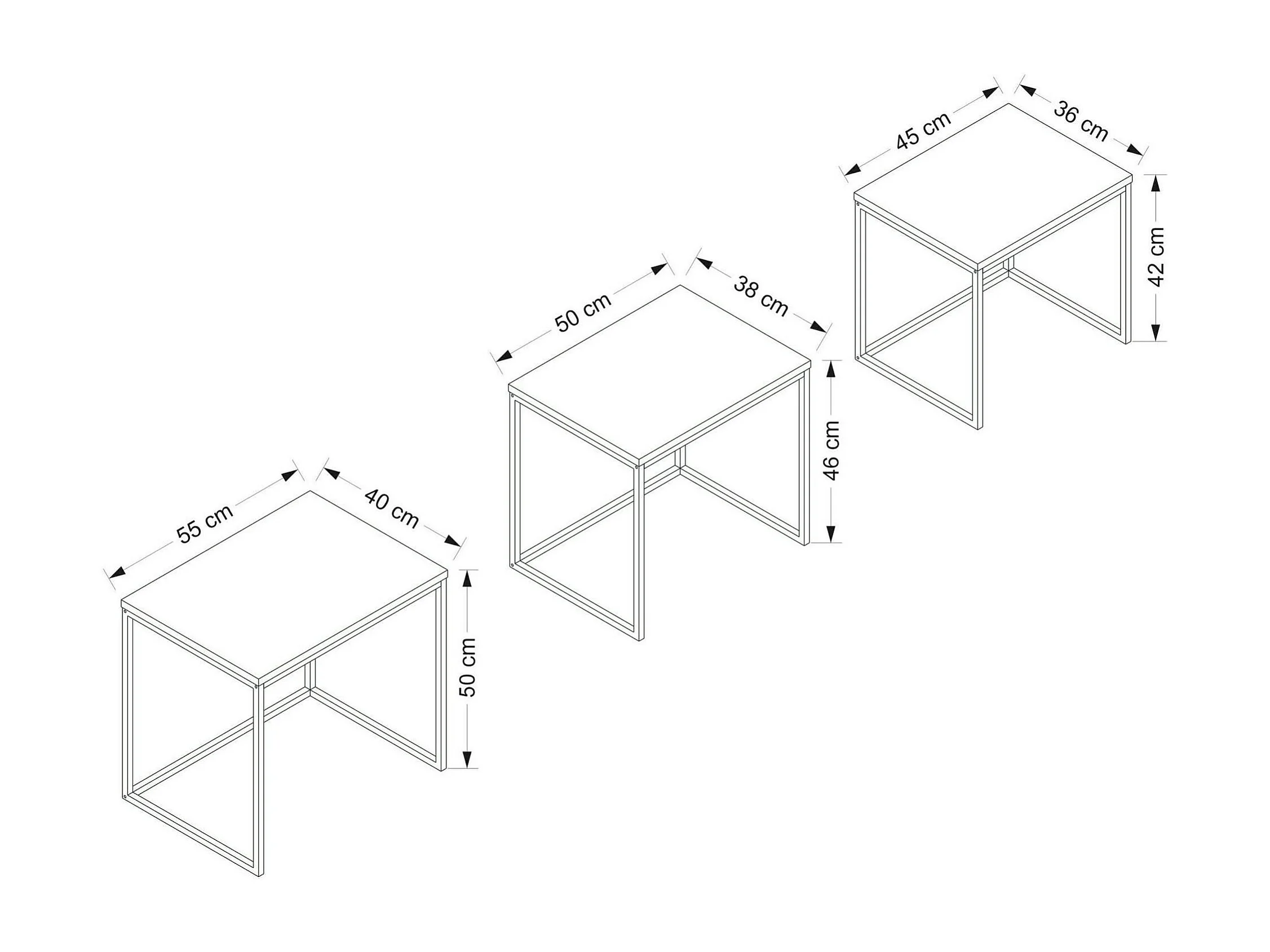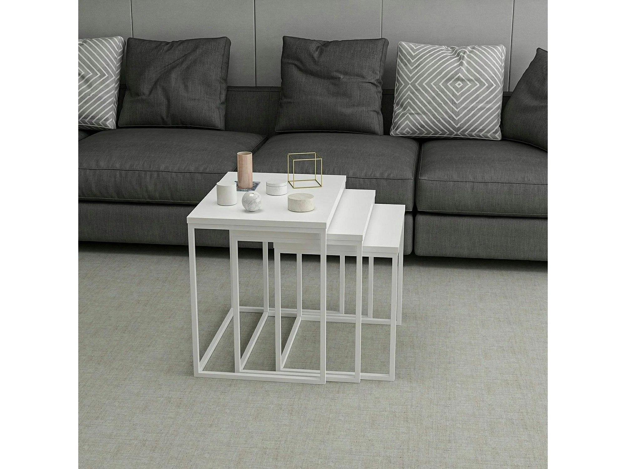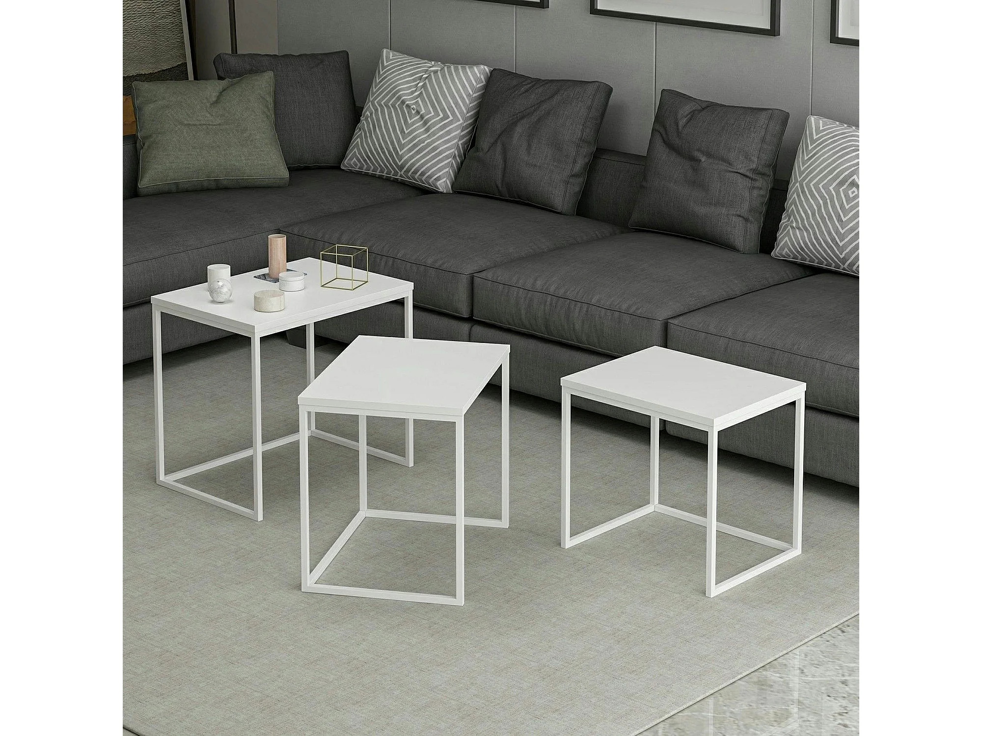 Ensemble table basse et 2 bouts de canapés gigognes Bernin Bois Blanc