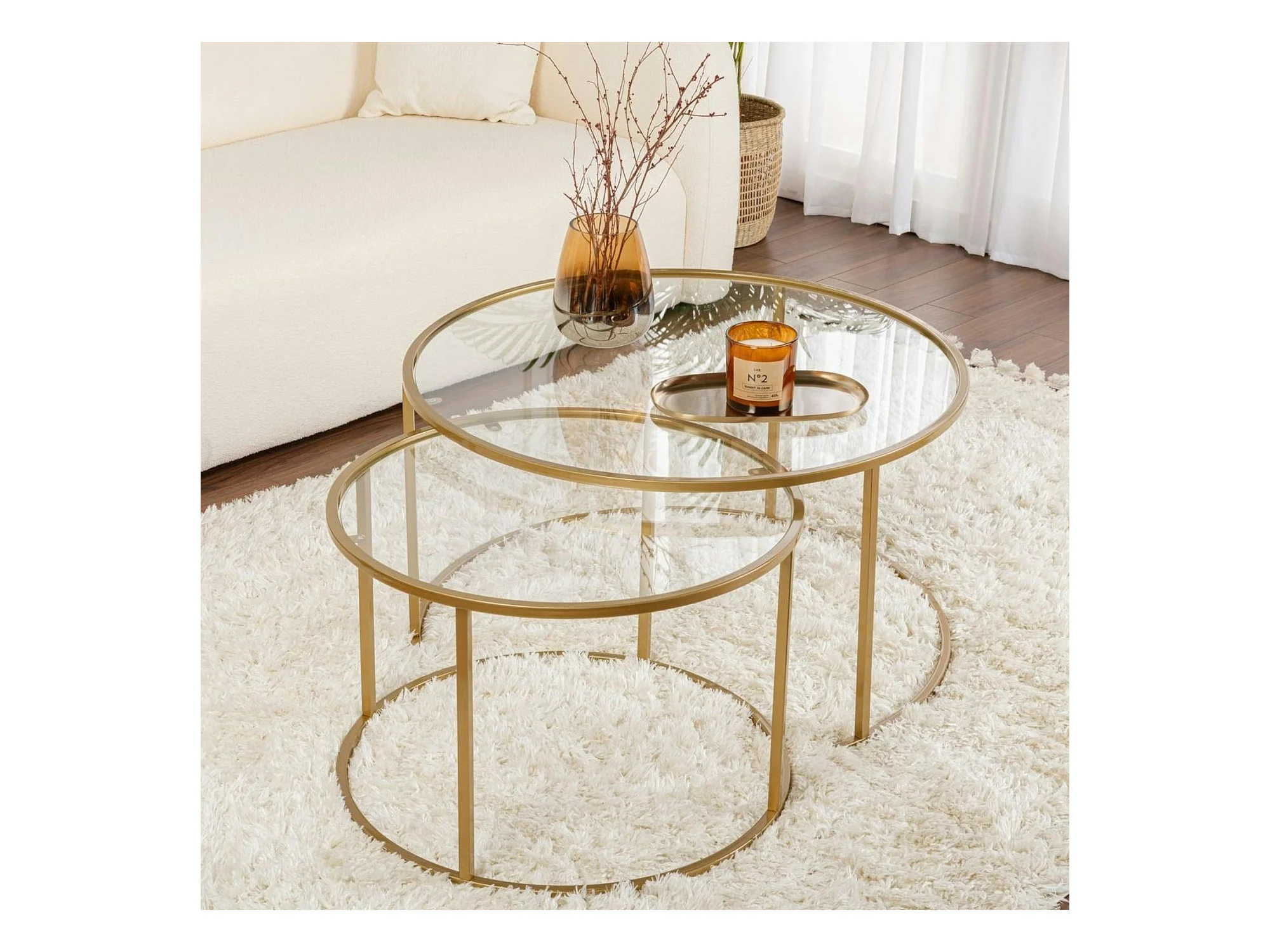 Table gigogne en verre - cadre doré (lot de 2) ⌀80 cm TULUM