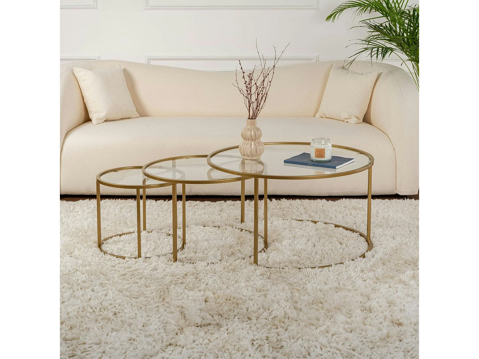 Table gigogne en verre - cadre doré (lot de 3) ⌀80 cm TULUM