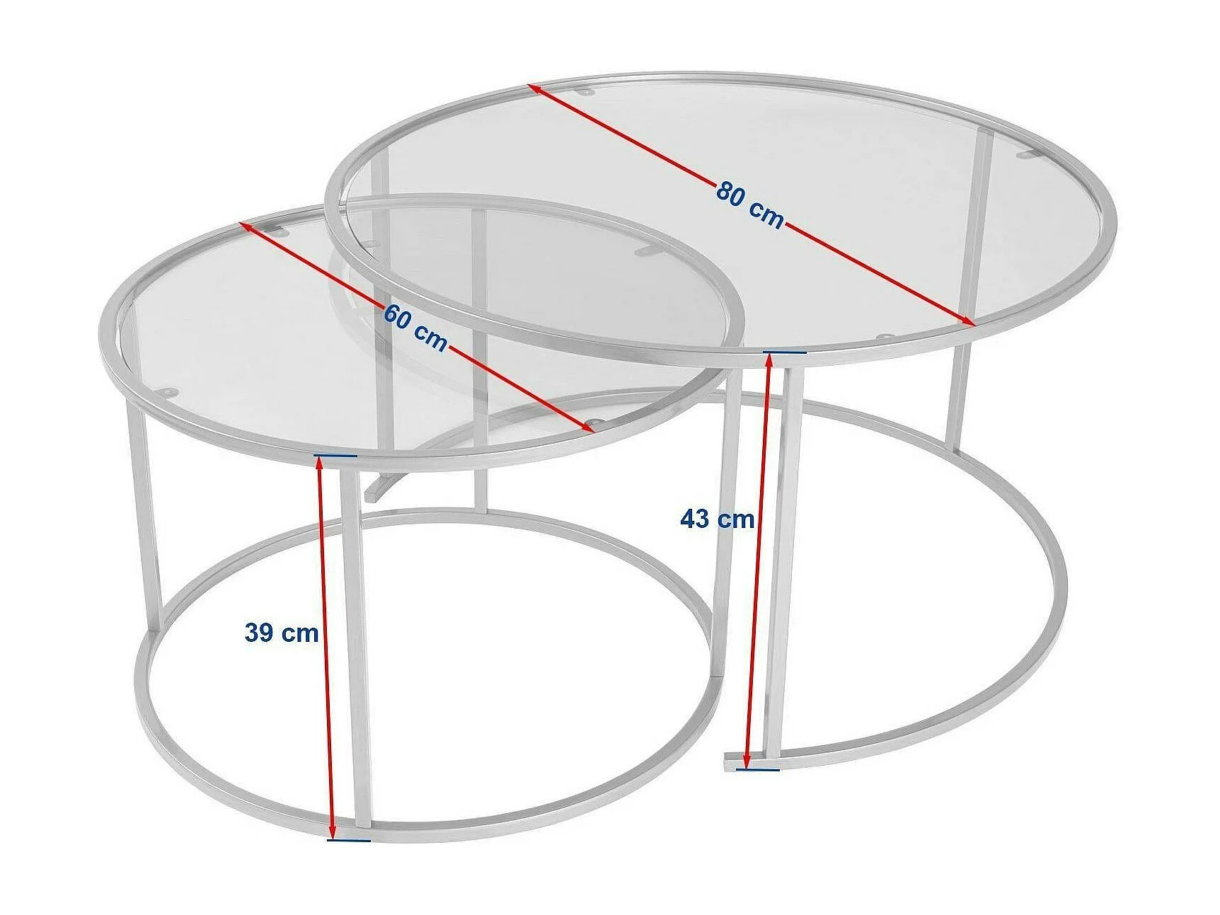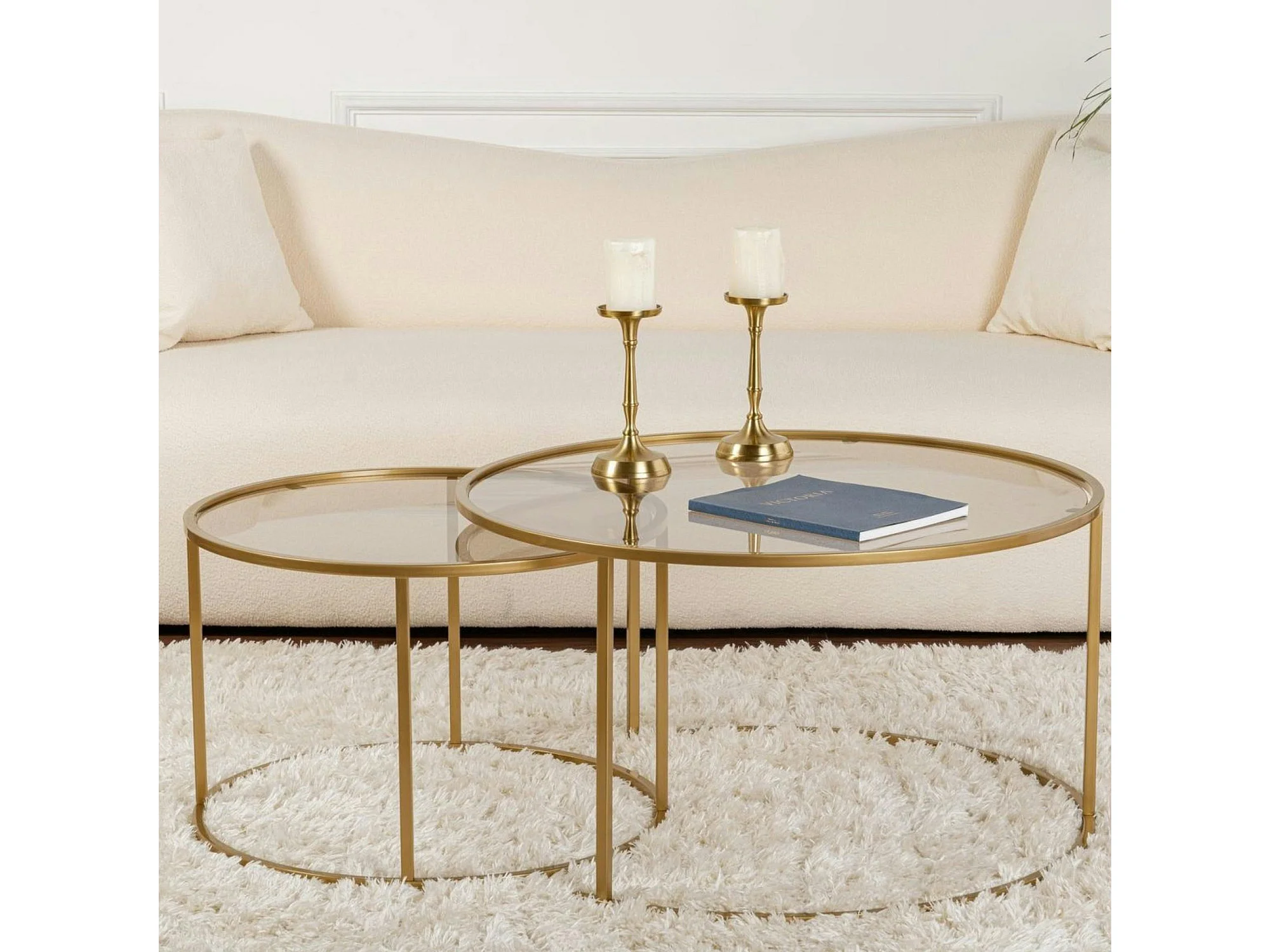 Lot de 2 tables basses gigognes rondes avec plateau en verre D80 cm - AURUM