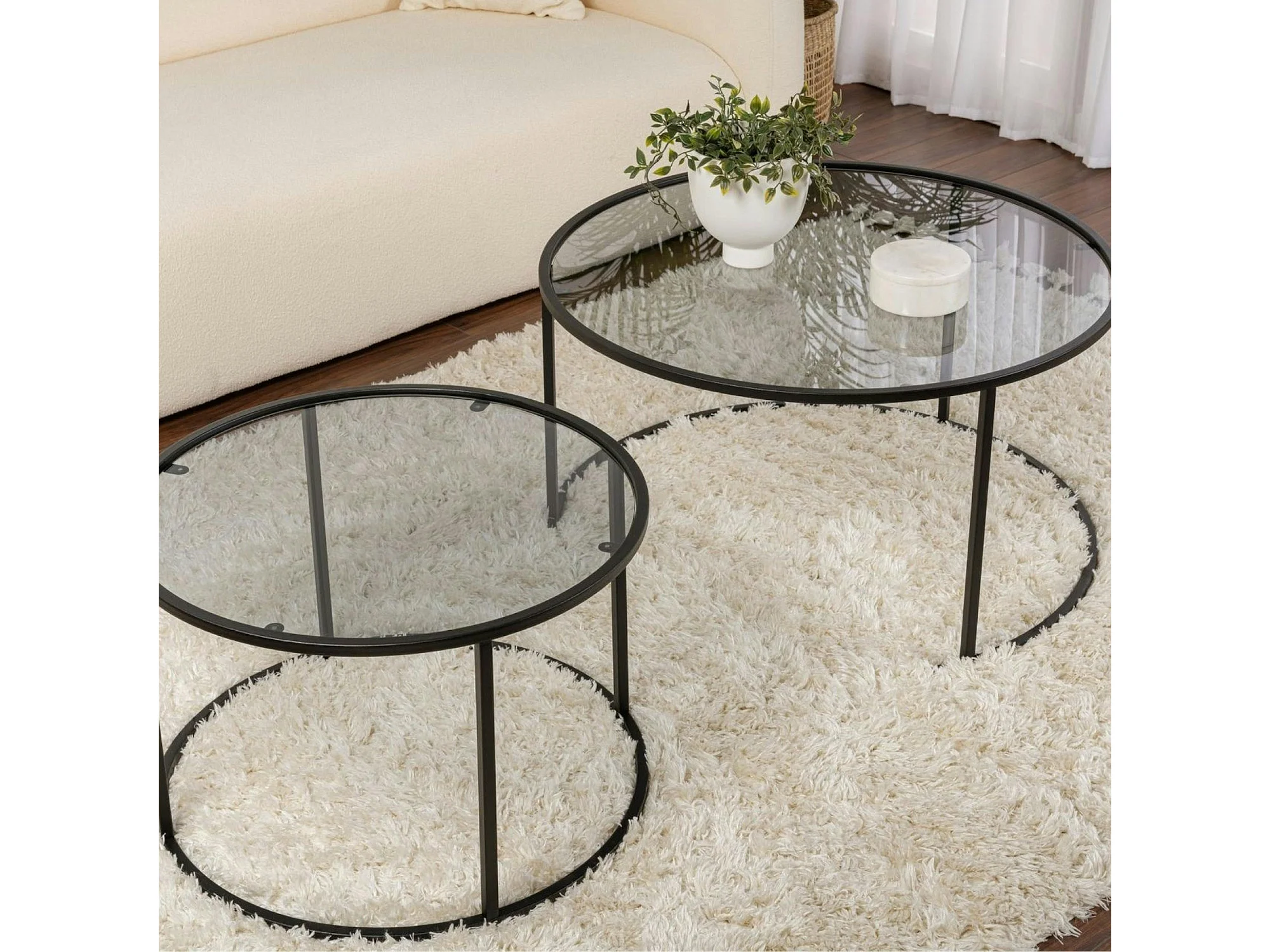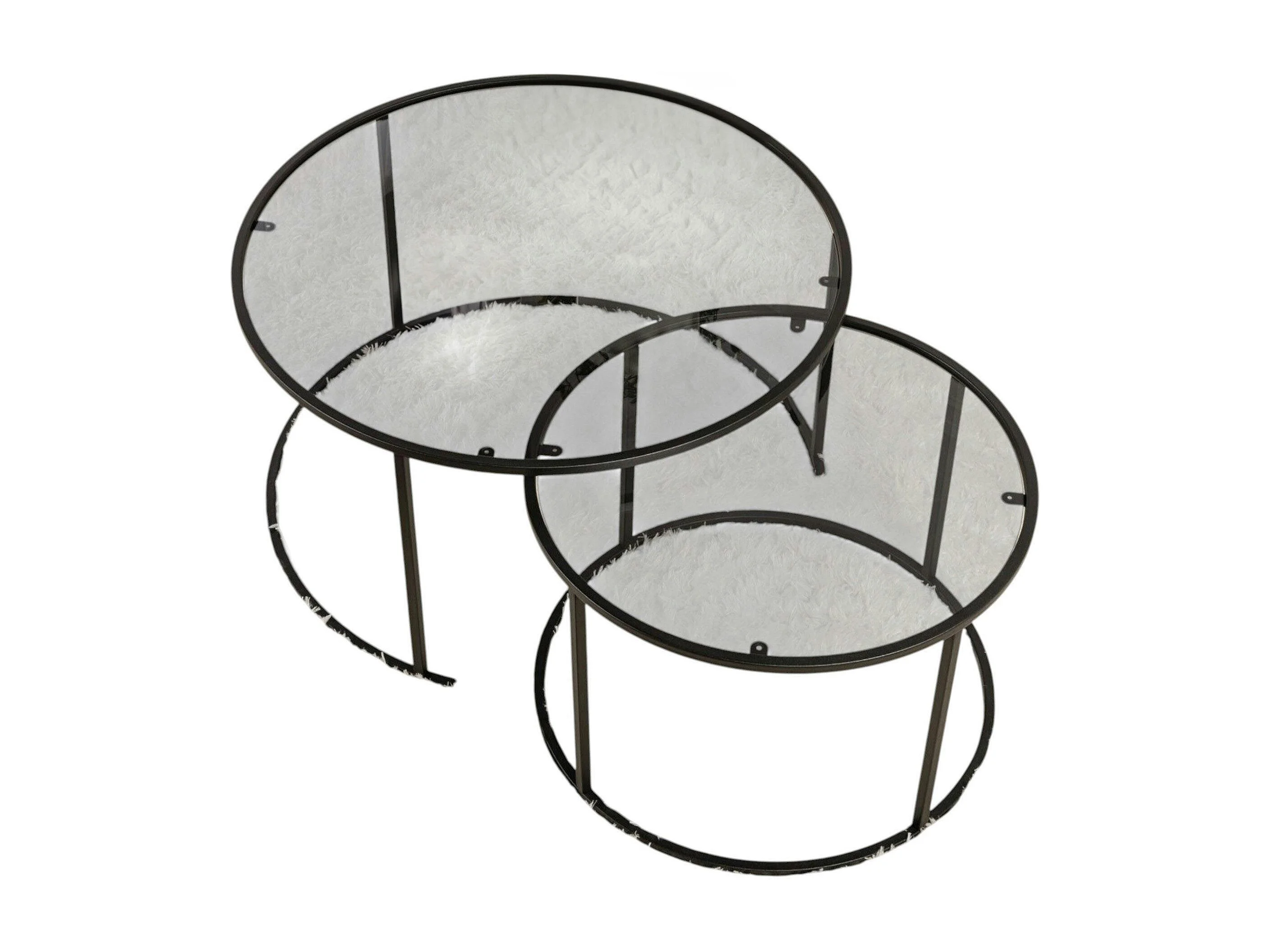 Table gigogne verre fumé - cadre noir (lot de 2) ⌀80 cm TULUM