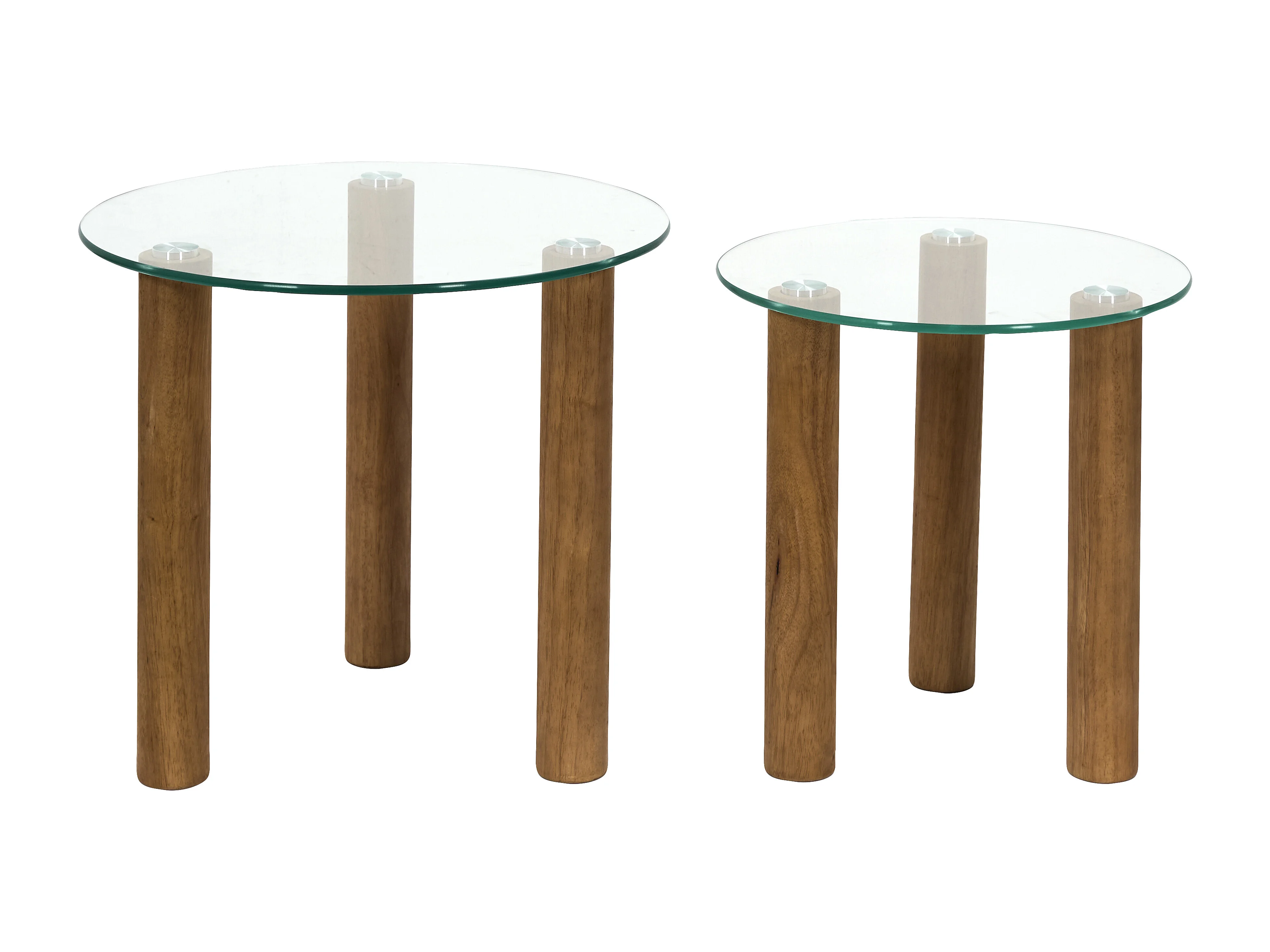 Table Gigogne Verre Trempe Rond Clara X2 Marron