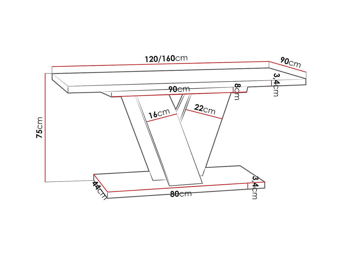 Table Goodyear 125, Blanc|Gris, 75x90x120cm, Allongement, Stratifié