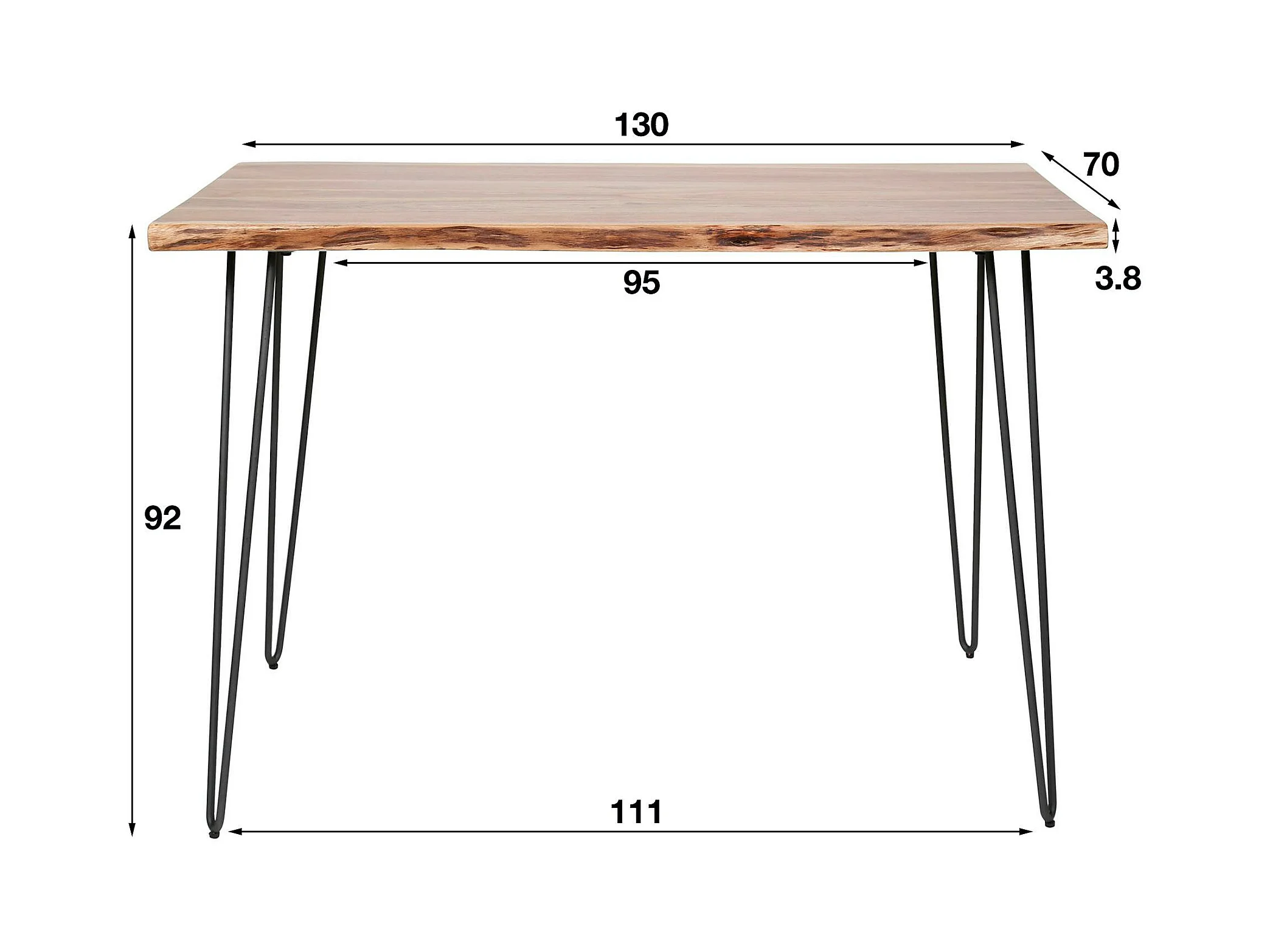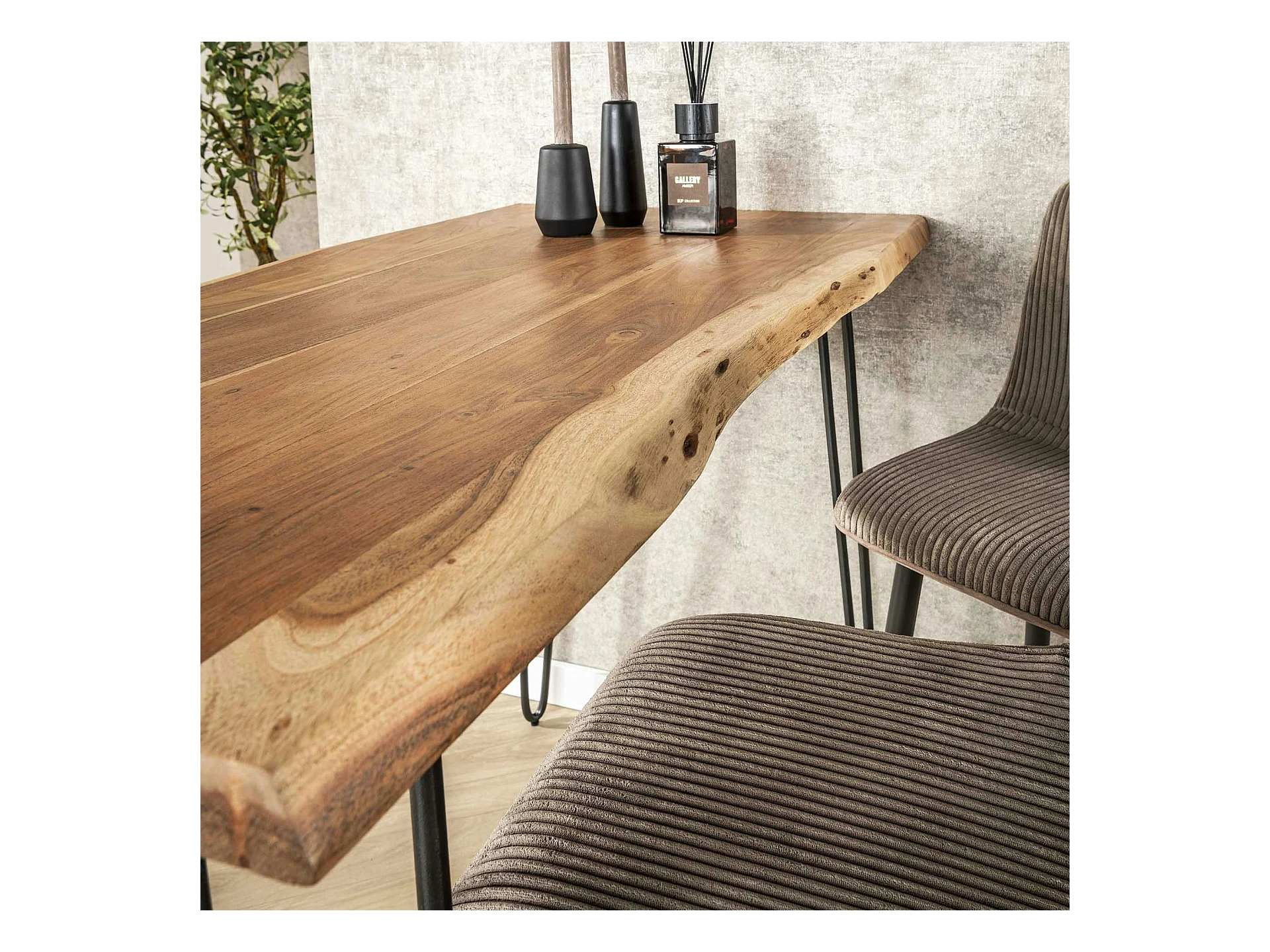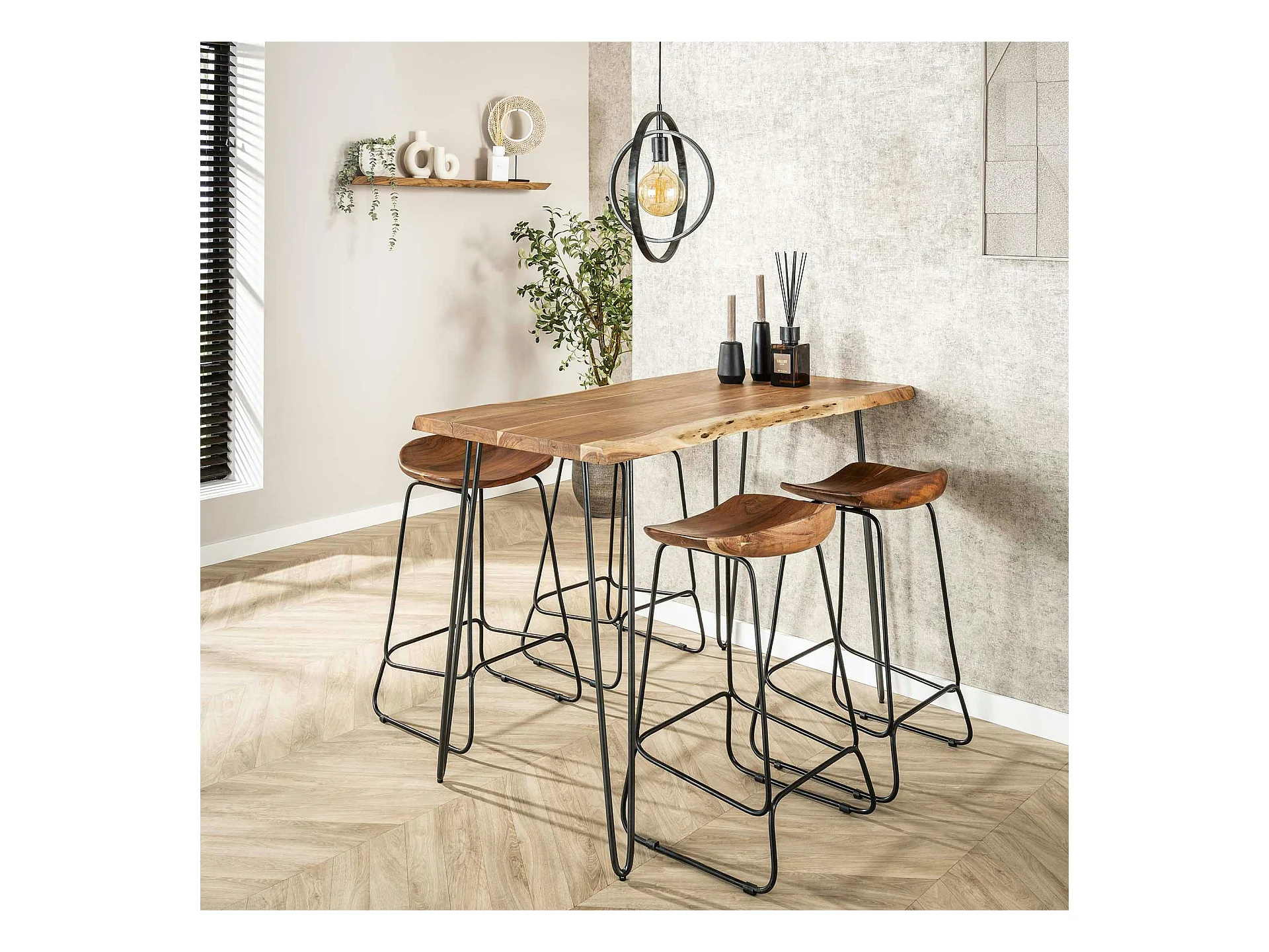 Table haute en bois massif bordure naturelle 130 cm MELBOURNE