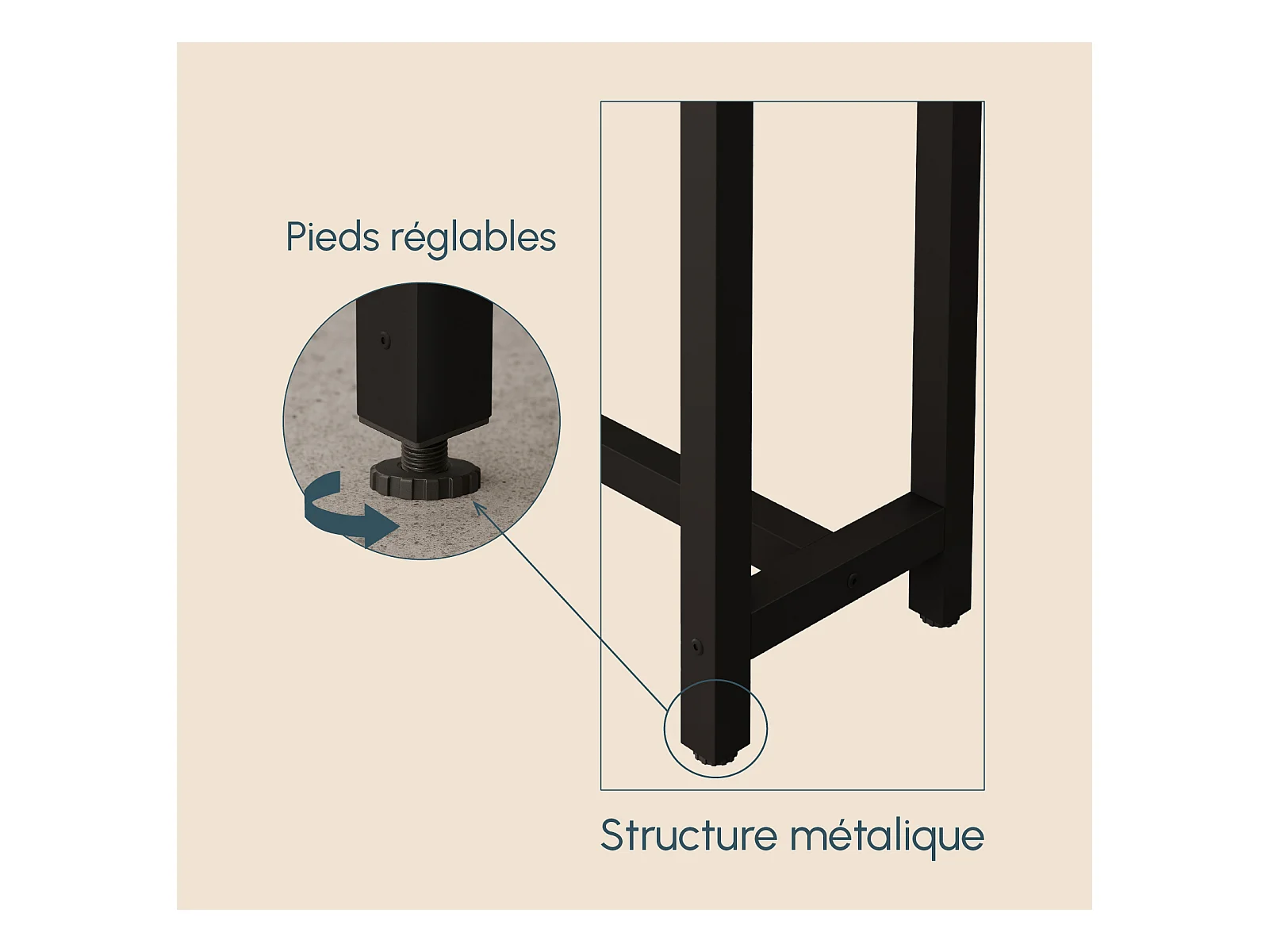 Table haute de bar BRAGA mange-debout comptoir en métal avec plateau en fibres de bois couleur brun rustique