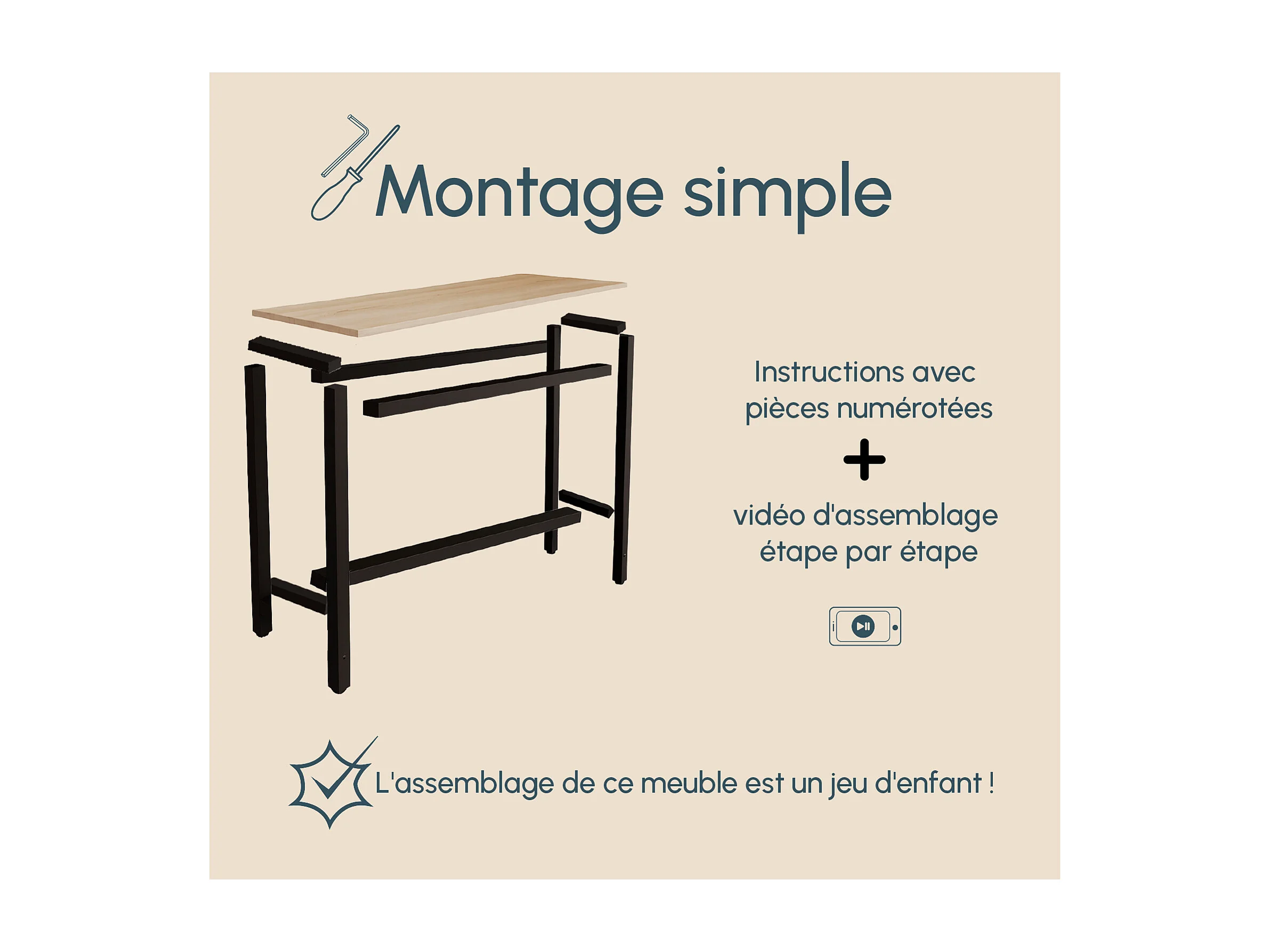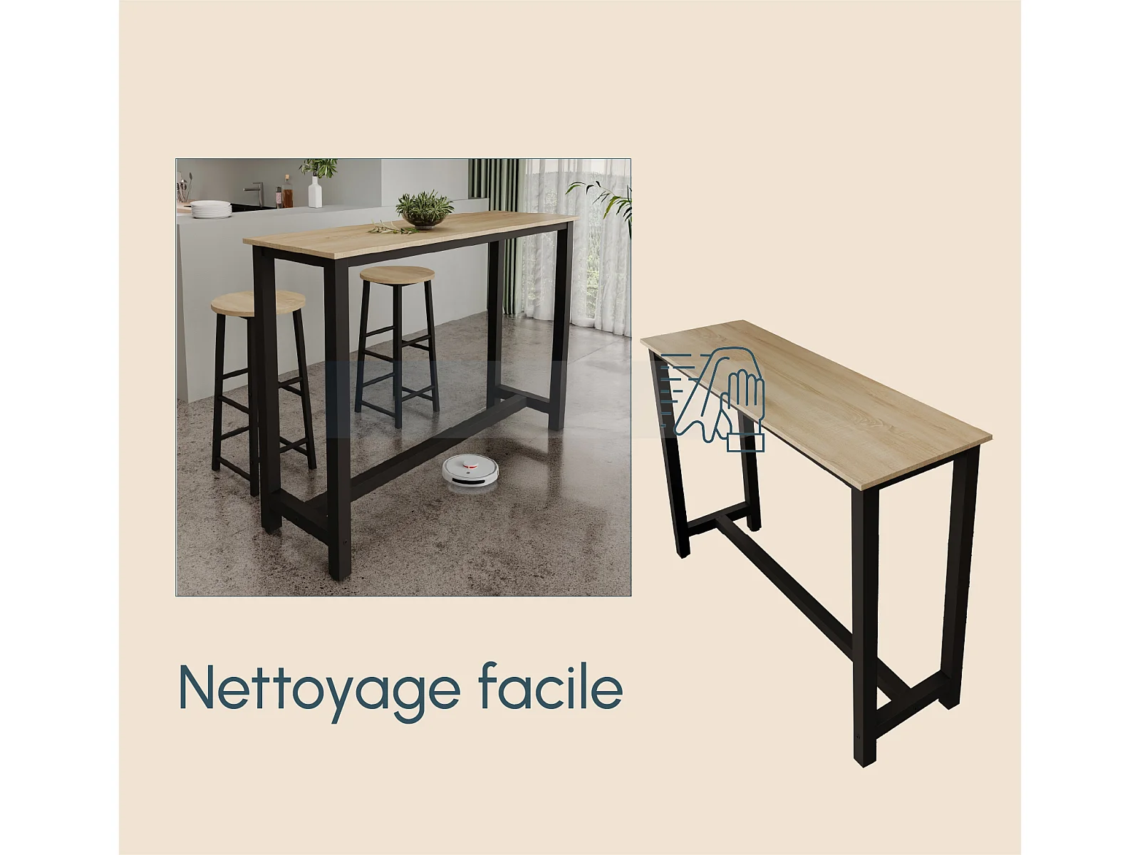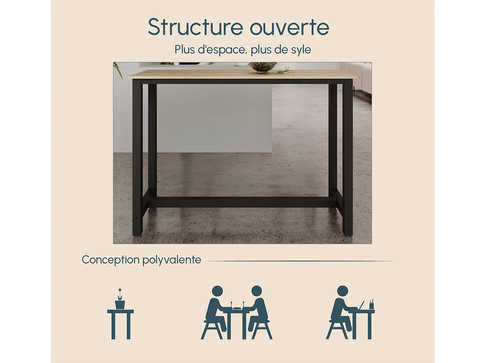 Table haute pour Cuisine Salle à manger en Noir et Sonoma 140x40x100cm Ani