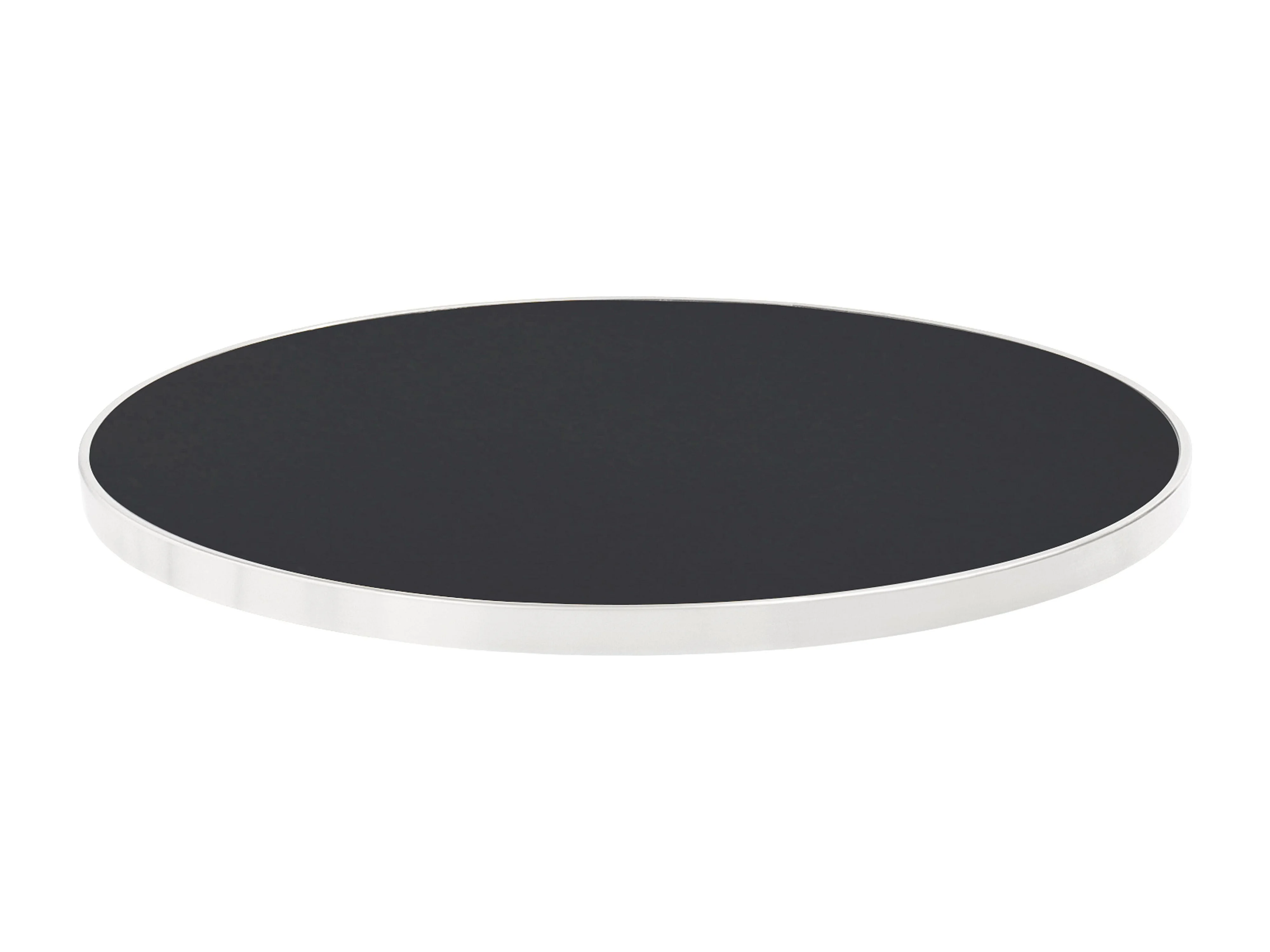 Table haute ronde 60 cm inclinable plateau noir/argent et pied noir