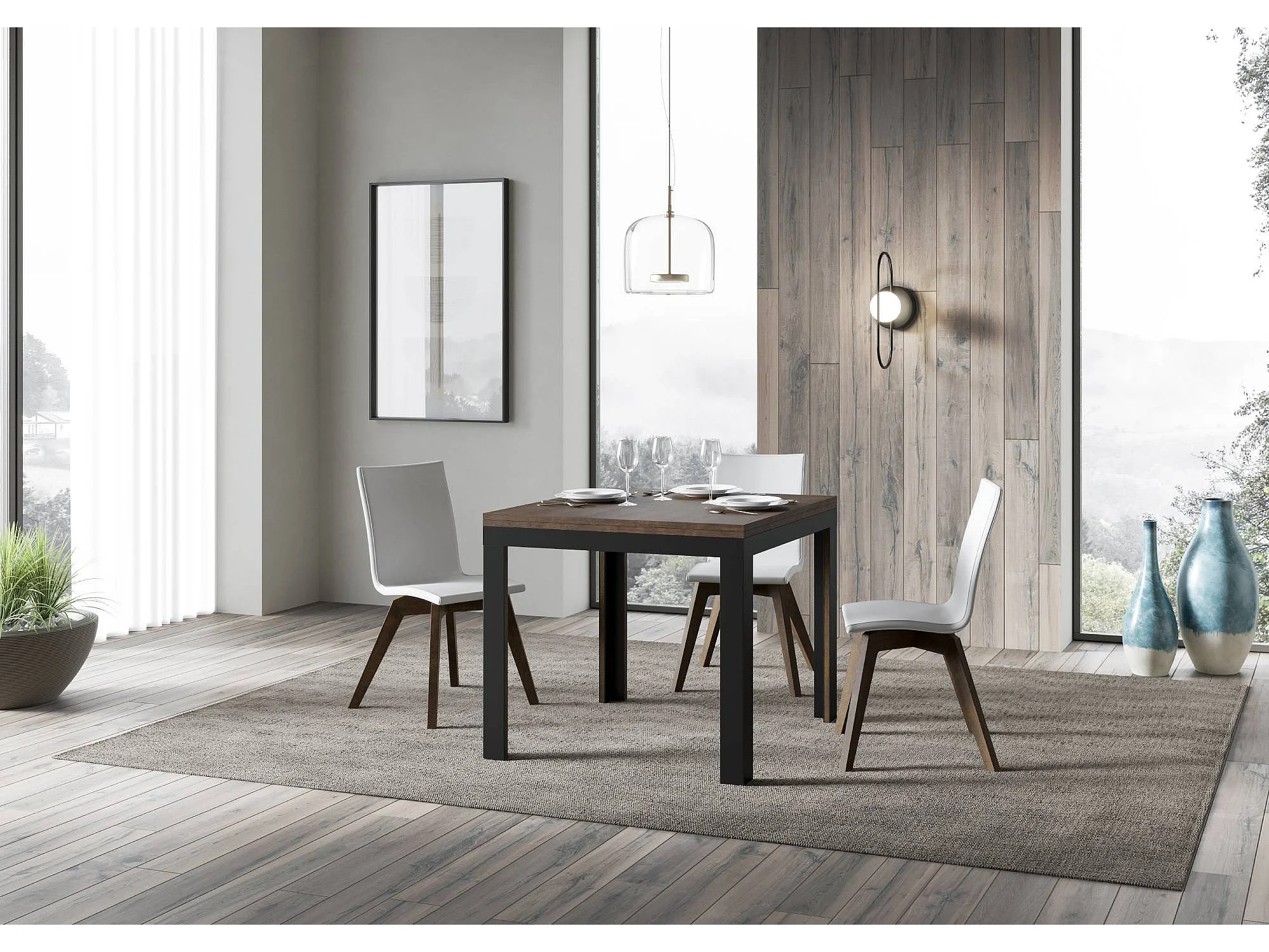 Table extensible portefeuille 90x90/180 cm Linea Libra Noyer cadre Anthracite
