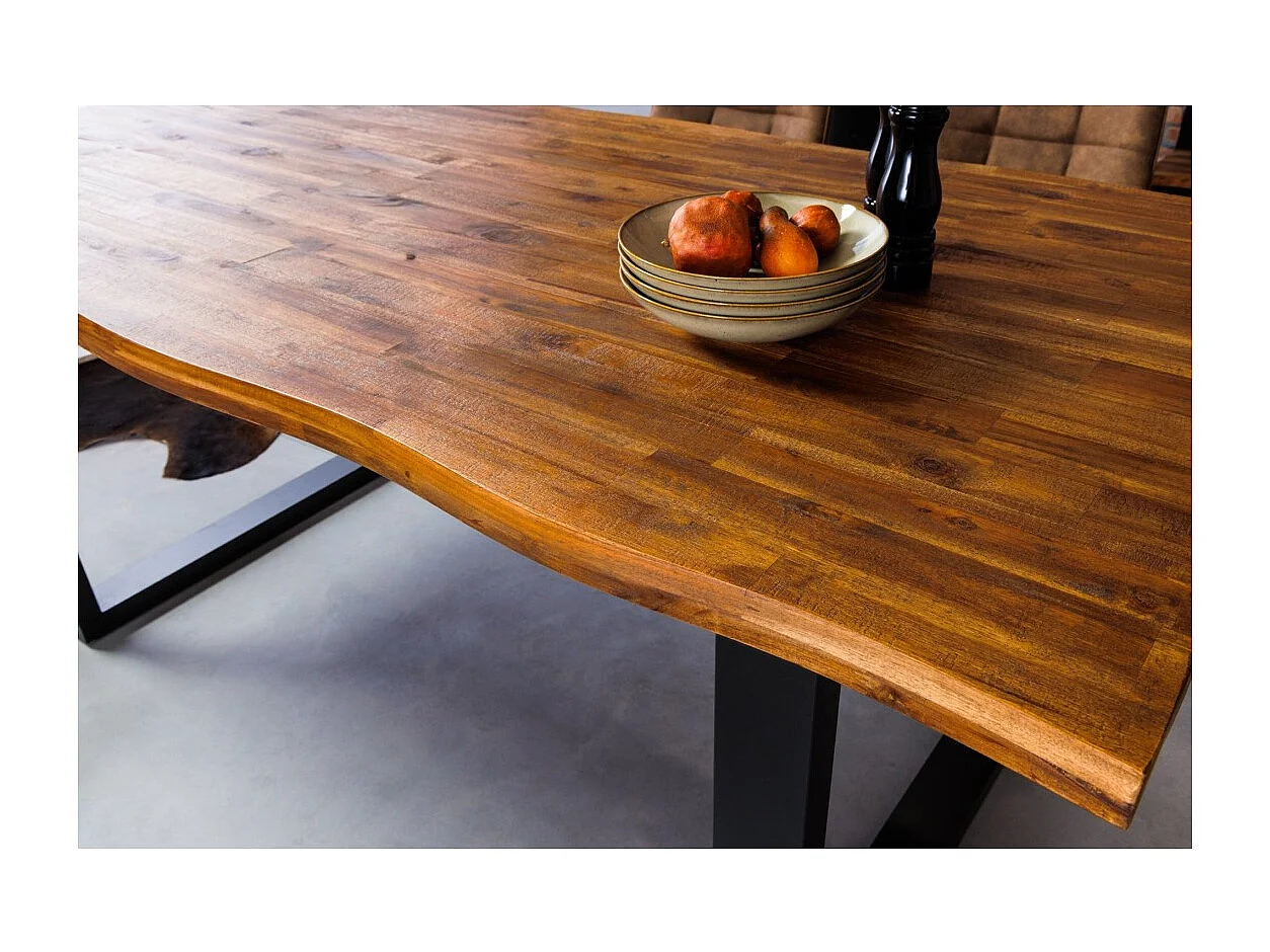 Table NALKO 200 cm – Plateau en bois massif d'acacia et structure en métal noir – Élégance industrielle et authenticité naturell