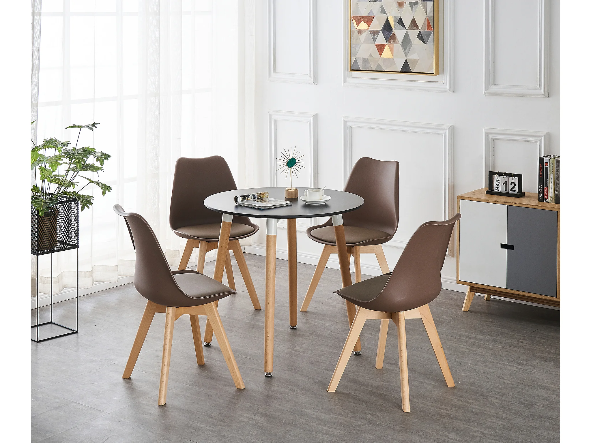 LORENZO HALO - Ensemble Salle à Manger - Table Noire Ronde + 4 Chaises Scandinaves Marron