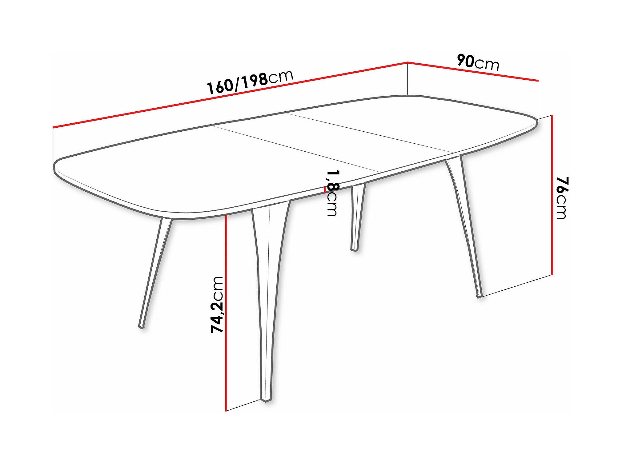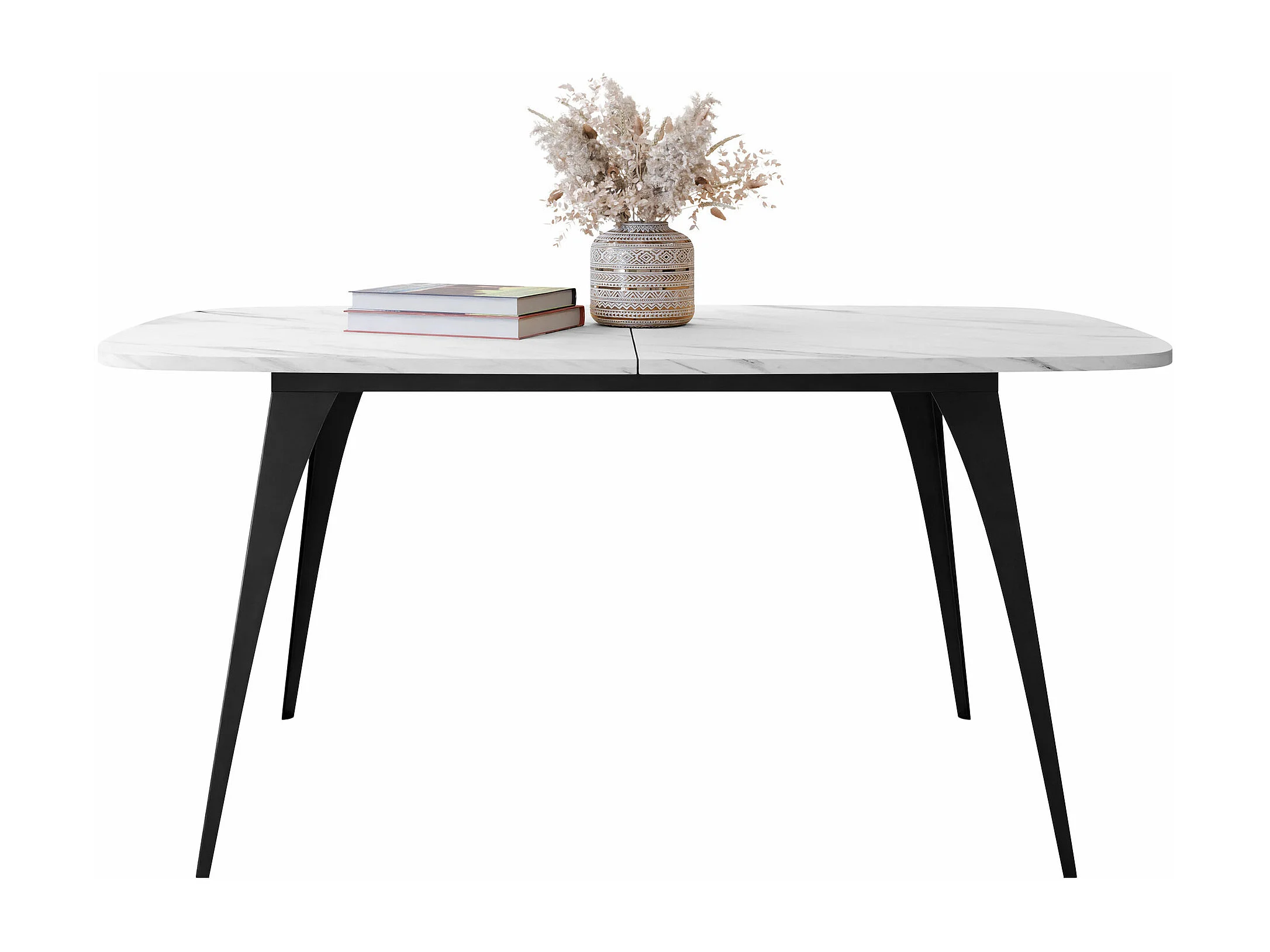 Table Oswego 131, Marbre blanc|Noir, 76x90x160cm, Allongement, Stratifié, Métal