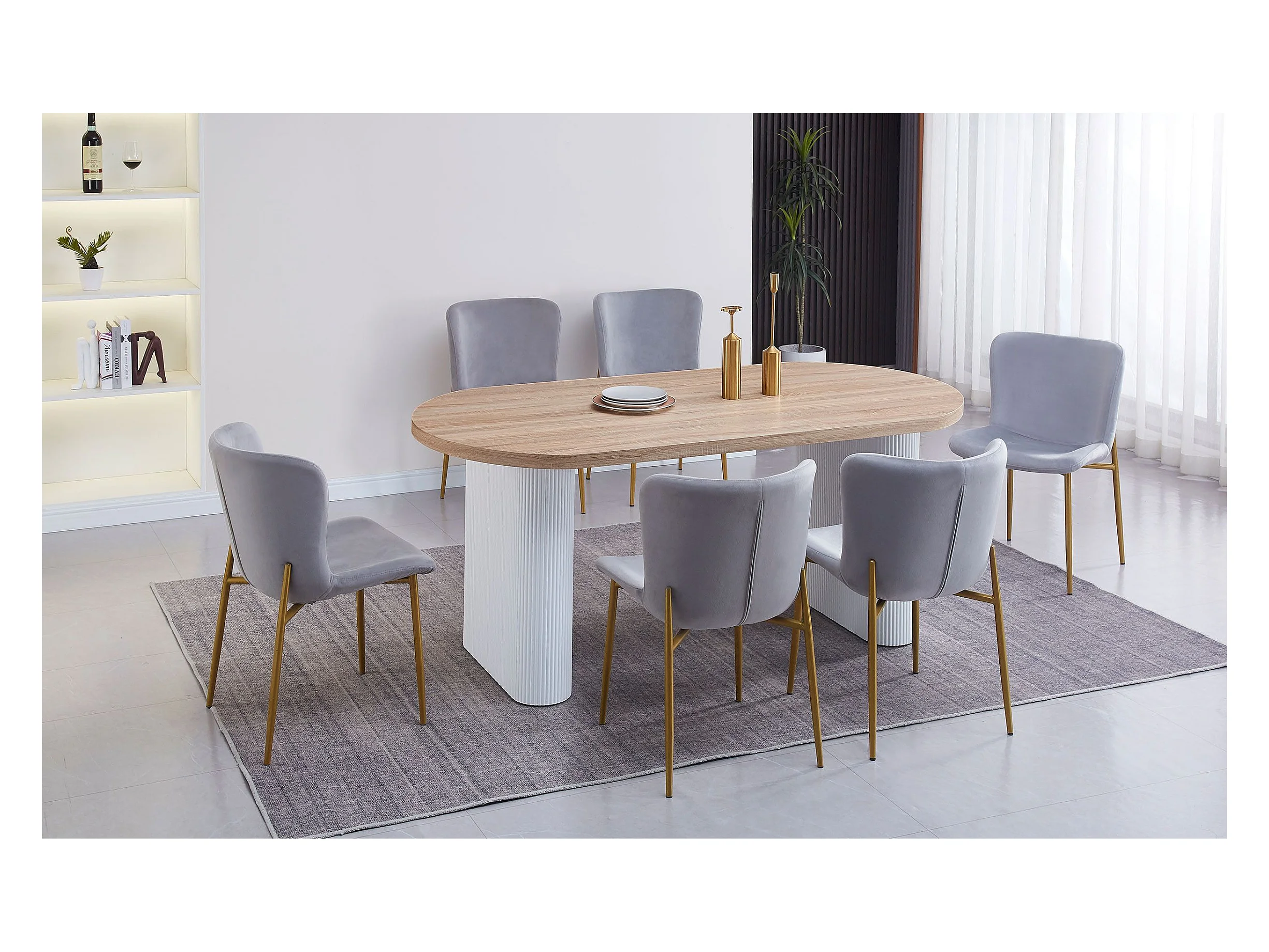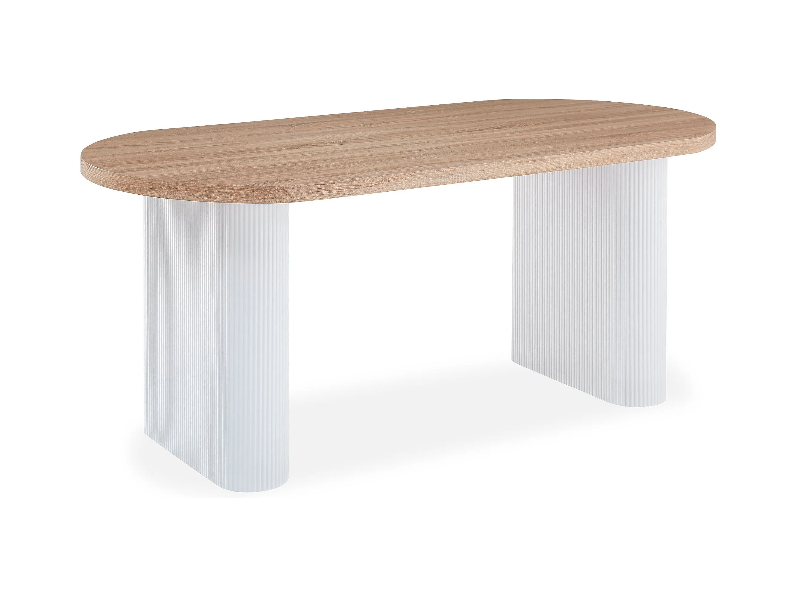 Table ovale Burundi avec pieds design style colonnes Bois Sonoma et Blanc