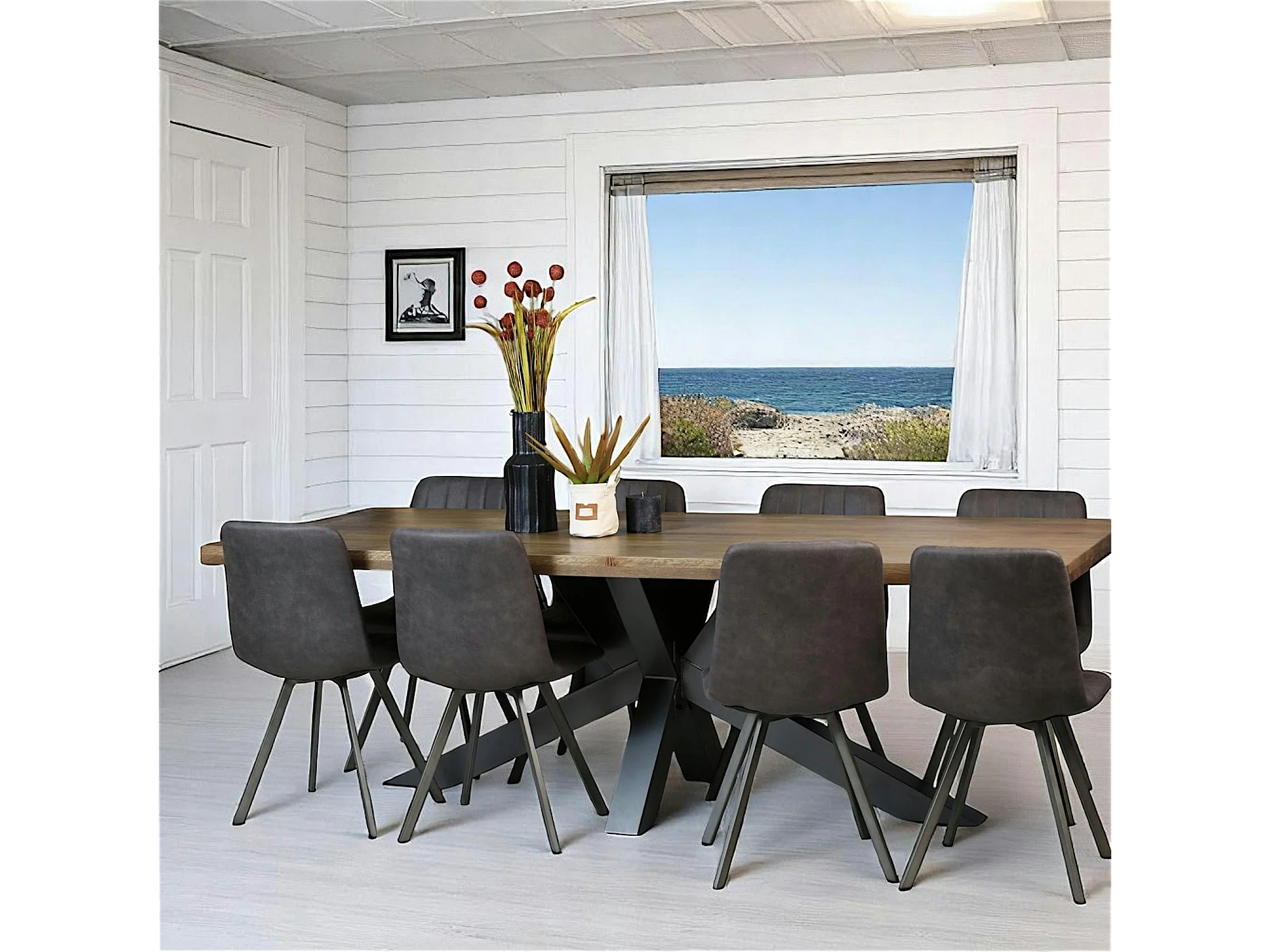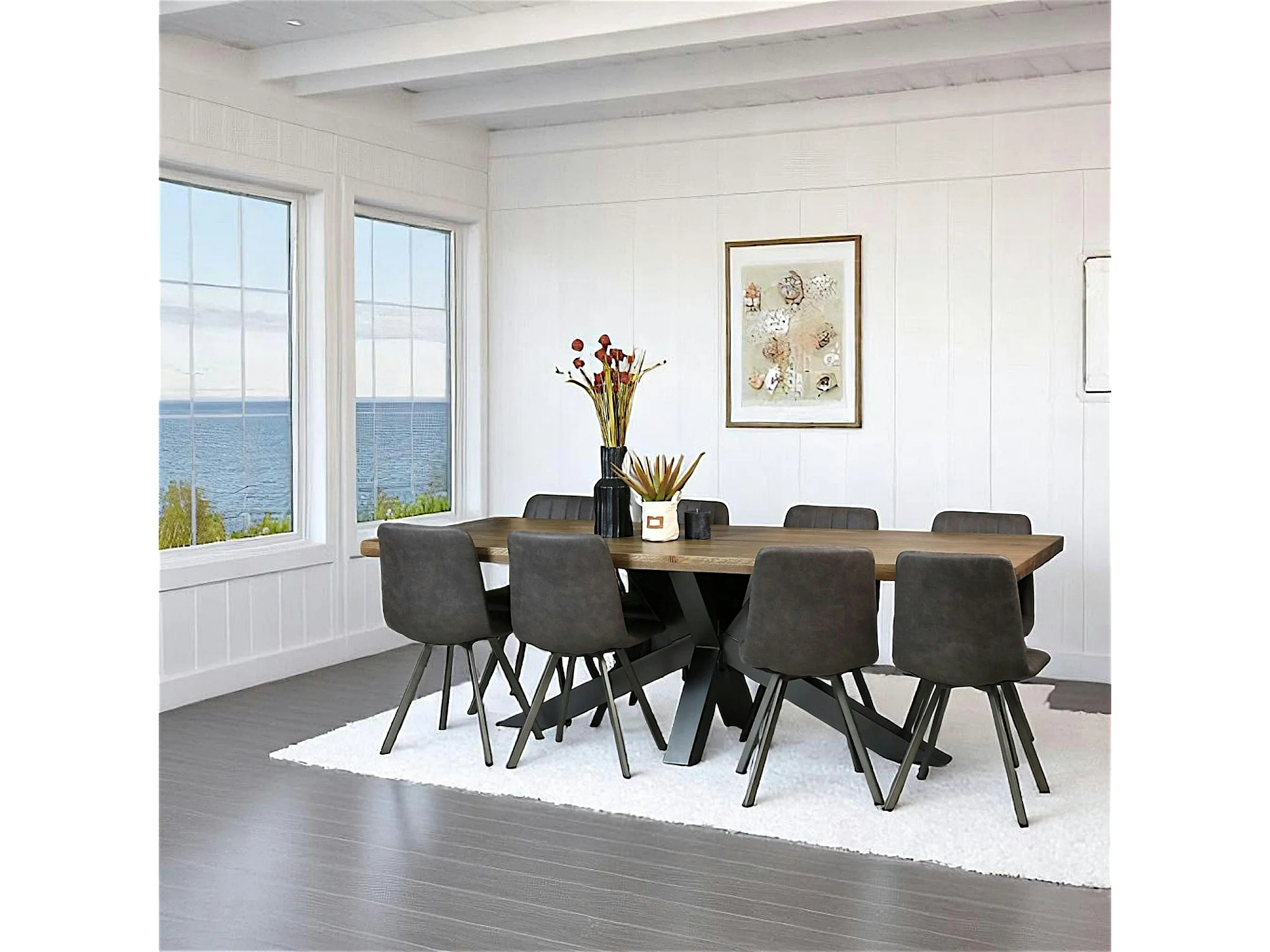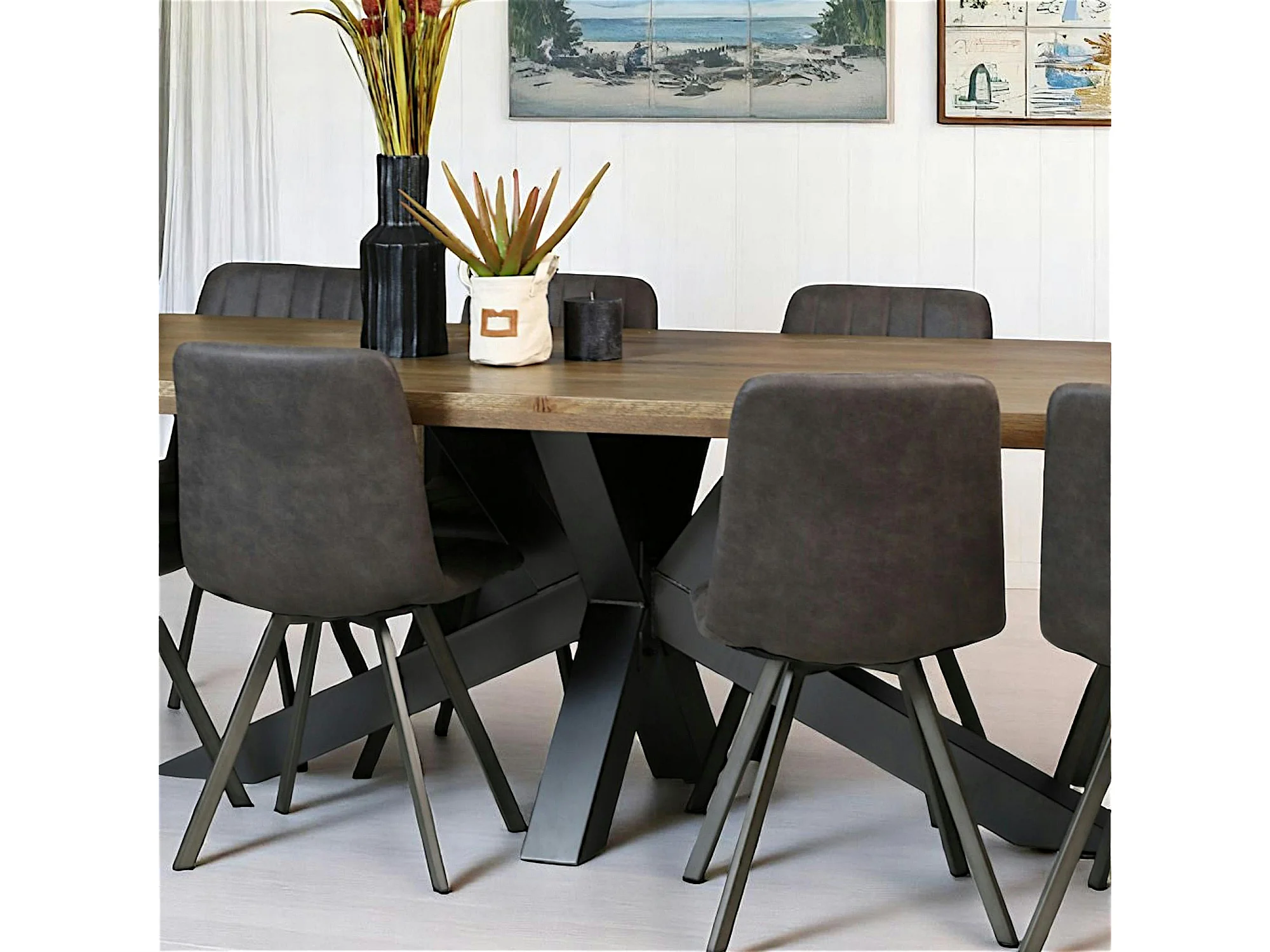 Table pied central bois de chêne et métal 240 cm HUDSON