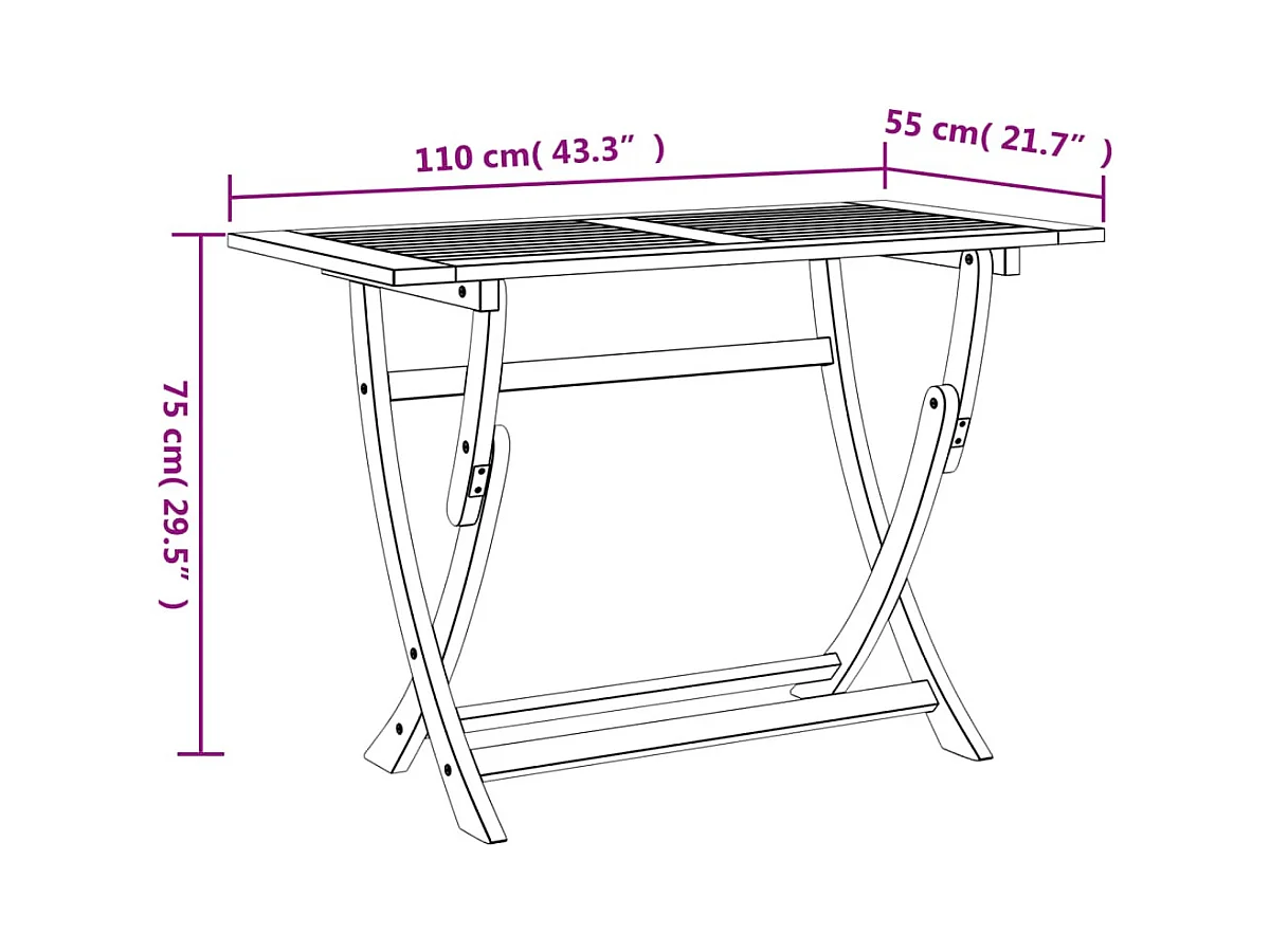 Table pliable de jardin 110x55x75 cm bois d'acacia solide