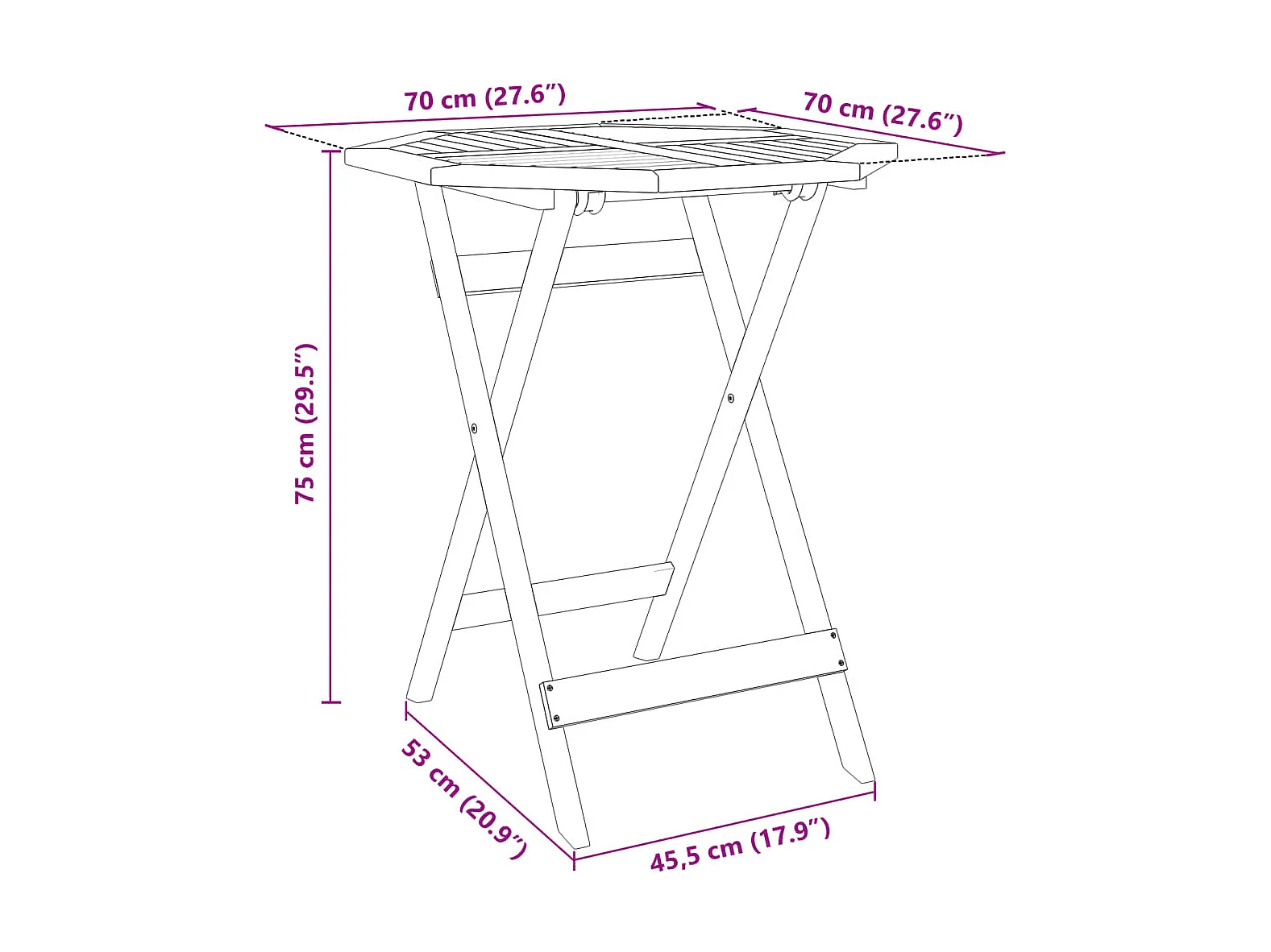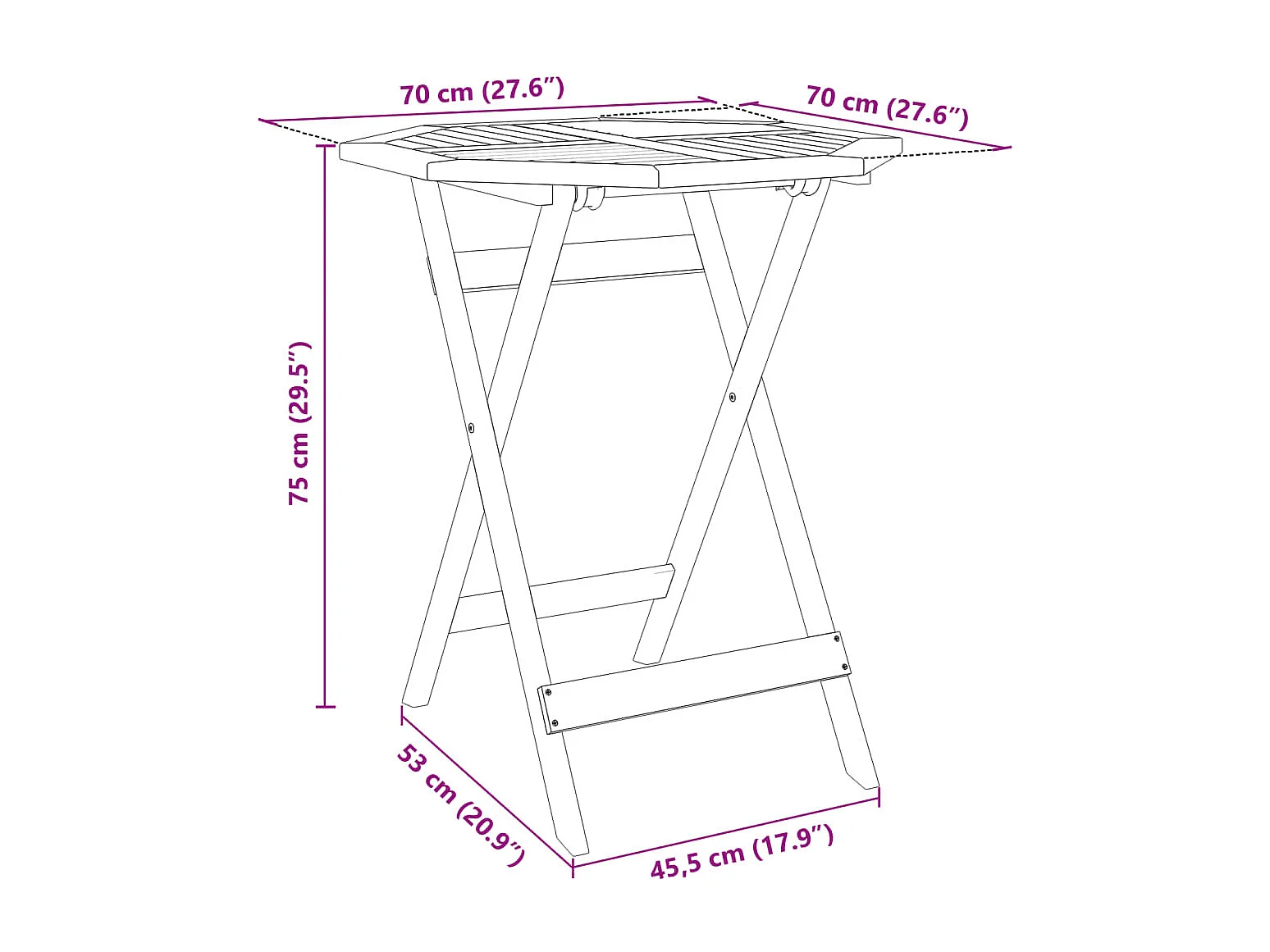 Table pliable de jardin Ø70x75 cm bois d'acacia massif