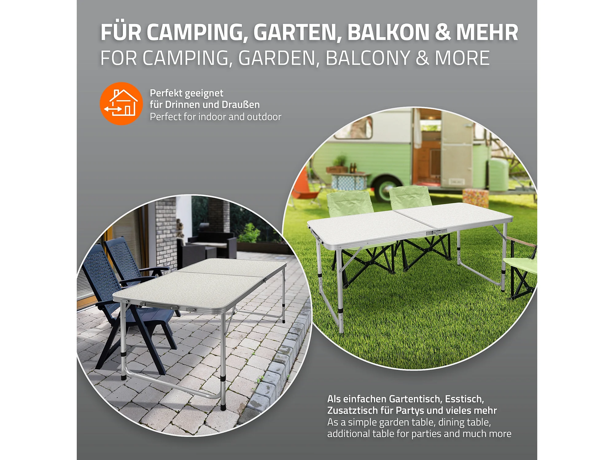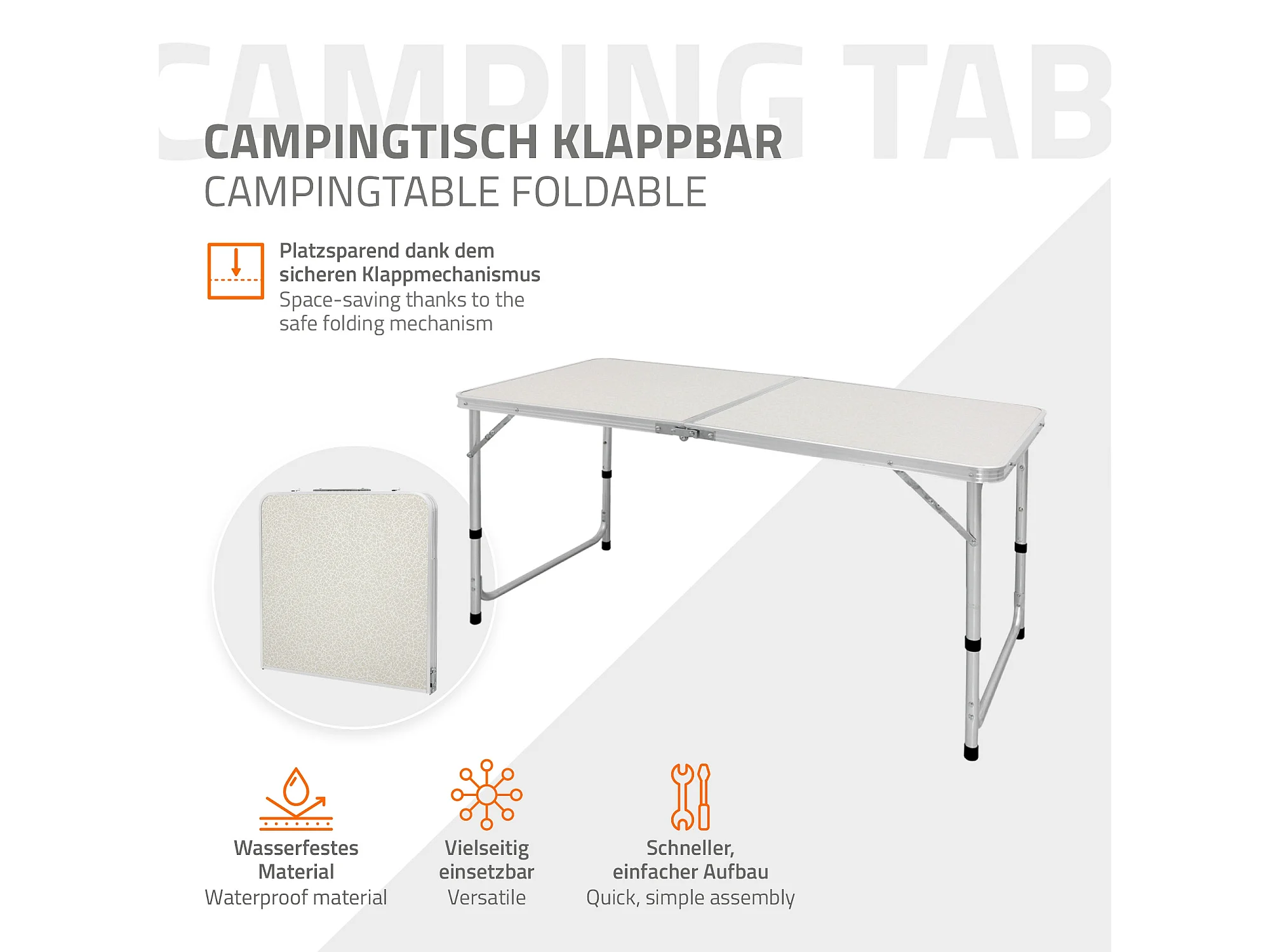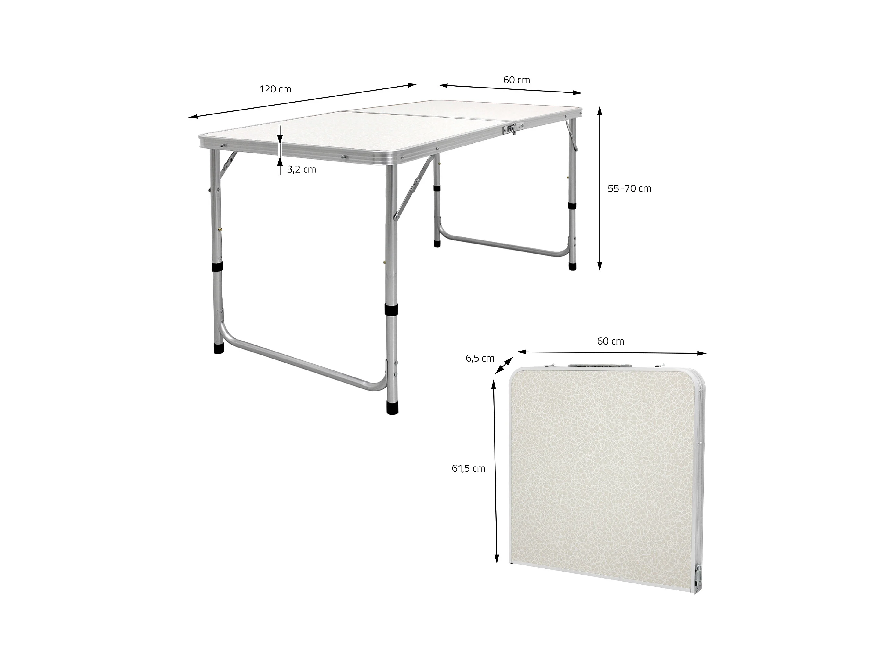 Table pliante de camping jardin pique-nique 120 cm blanc/crème en MDF/aluminium