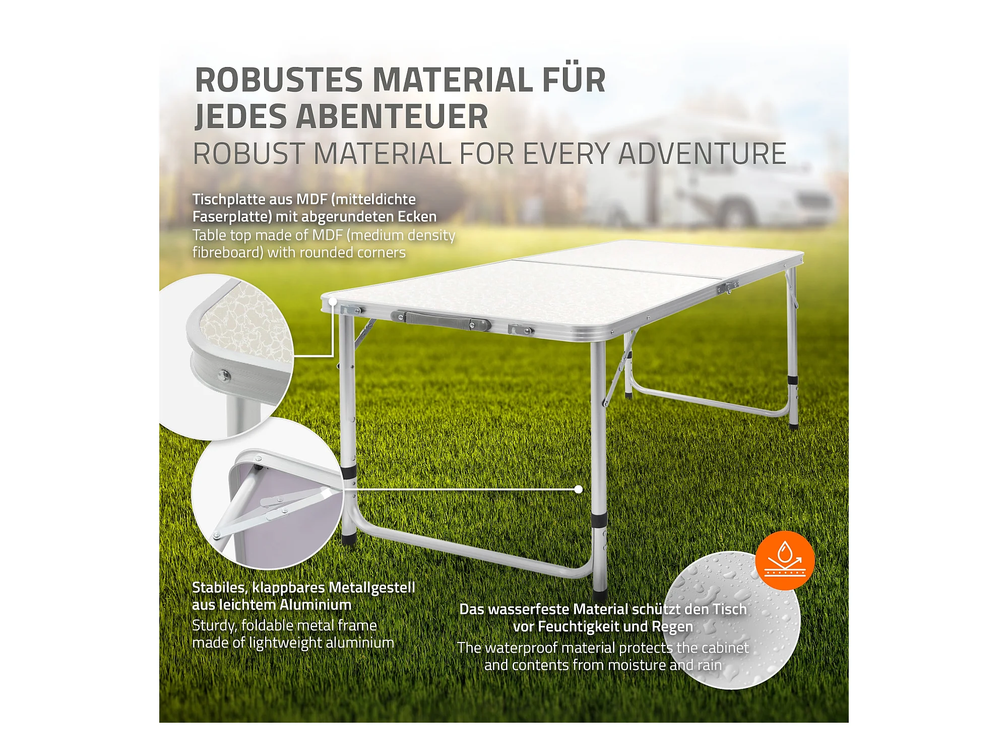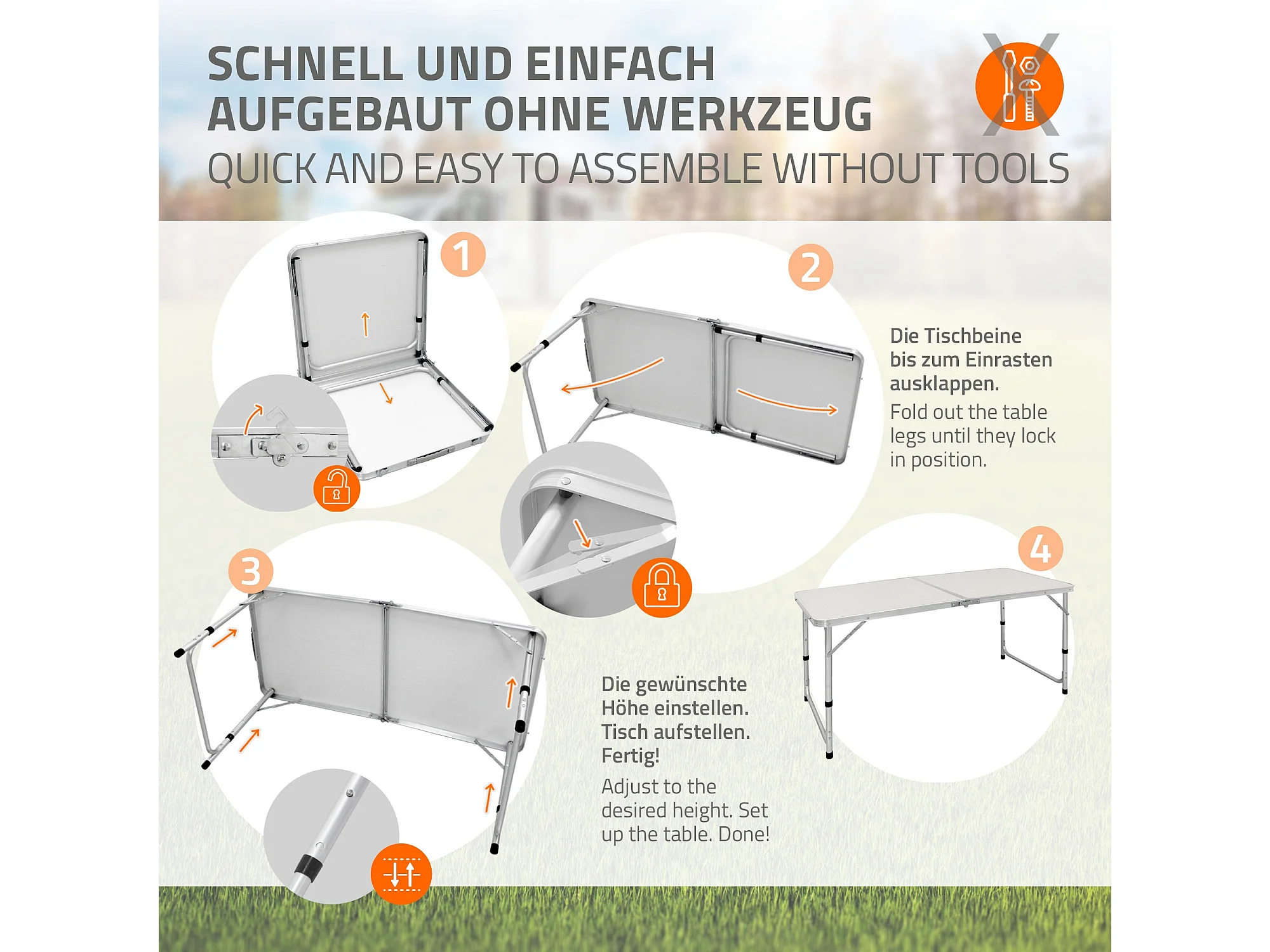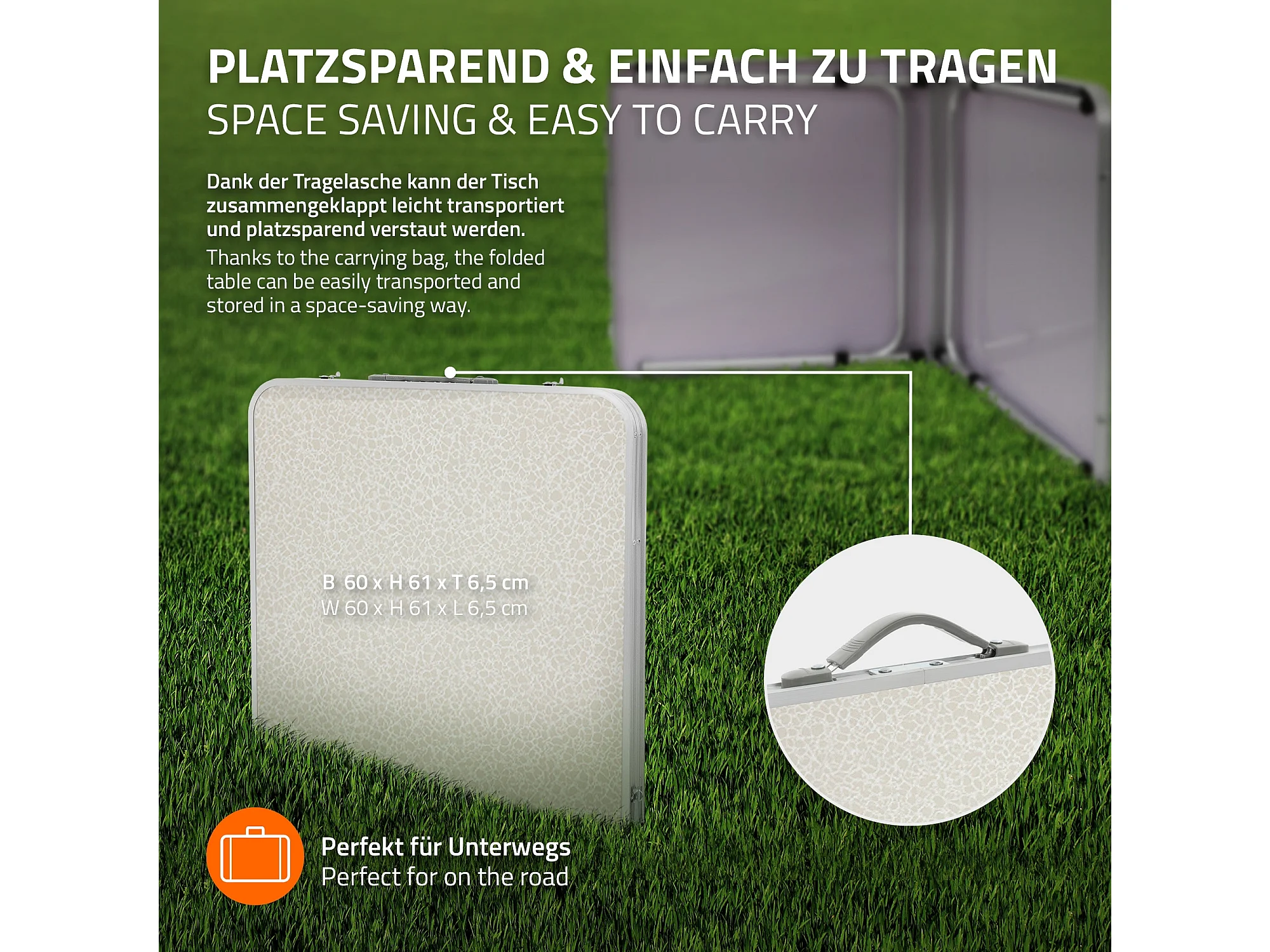 Table pliante de camping jardin pique-nique 120 cm blanc/crème en MDF/aluminium