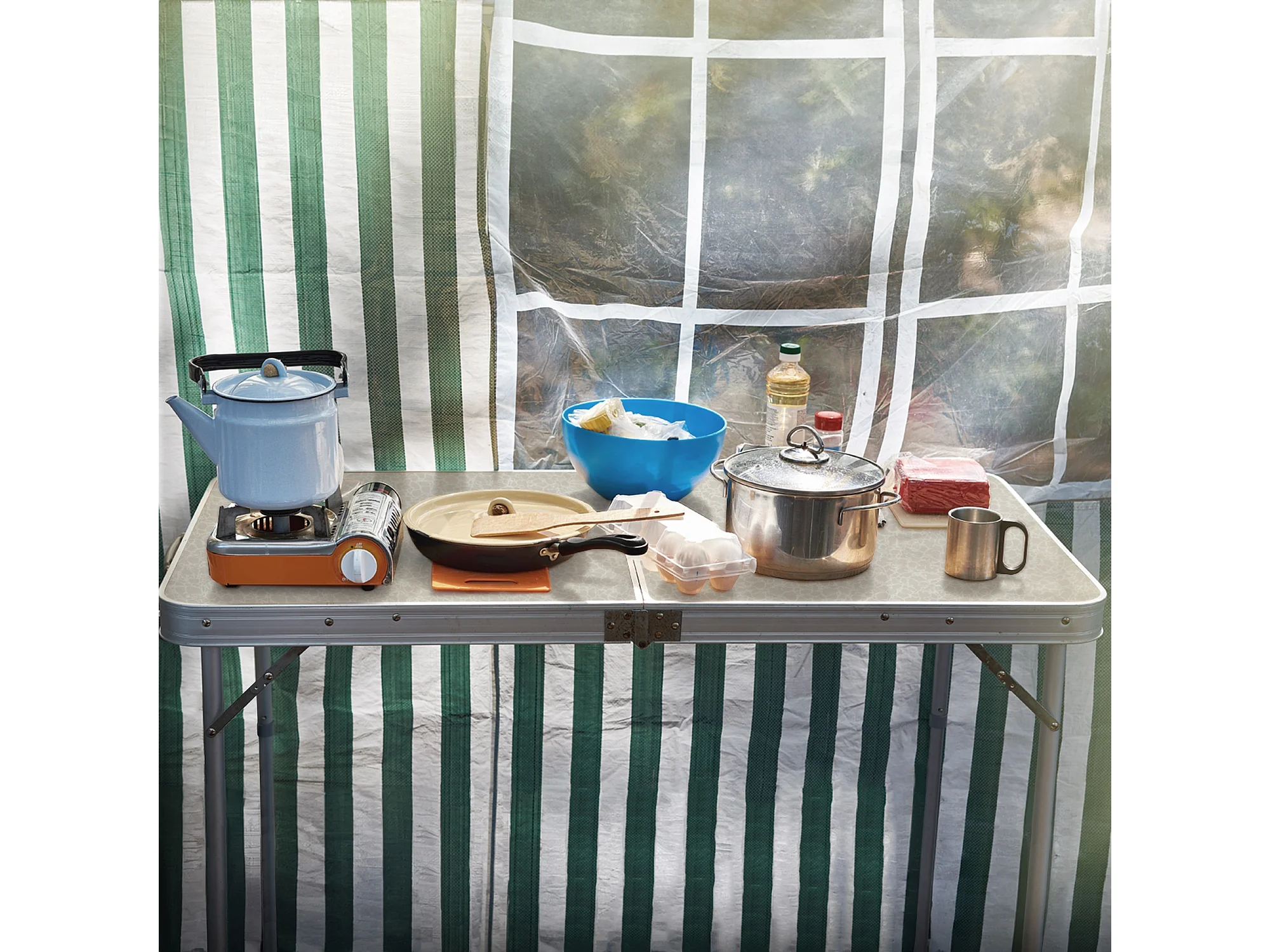 CAMPANI - Table Pliante de Plein Air Décor Rayures Jaunes et Blanches
