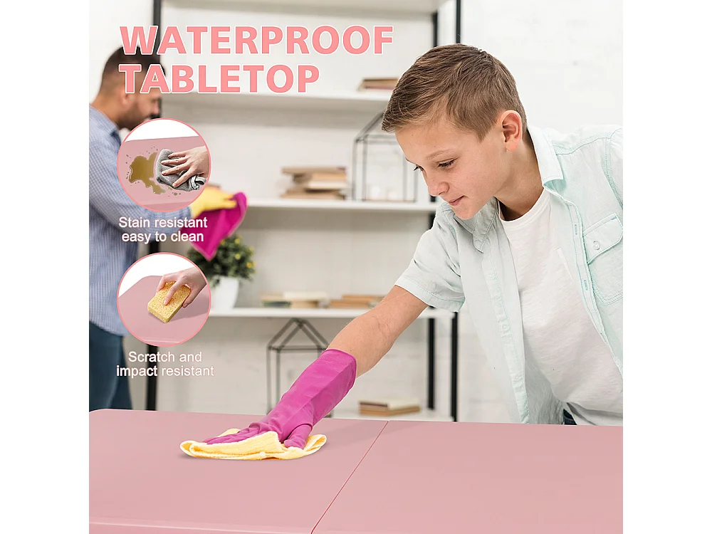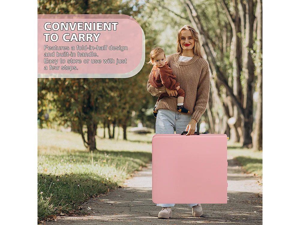 Table pliante portable 125 cm robuste poignée hauteur réglable multifonction camping pique-nique fêtes intérieur extérieur charge 135 kg rose