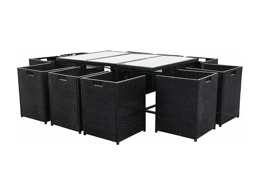 Table rectangulaire et 10 chaises de jardin résine tressée noir Iris 2