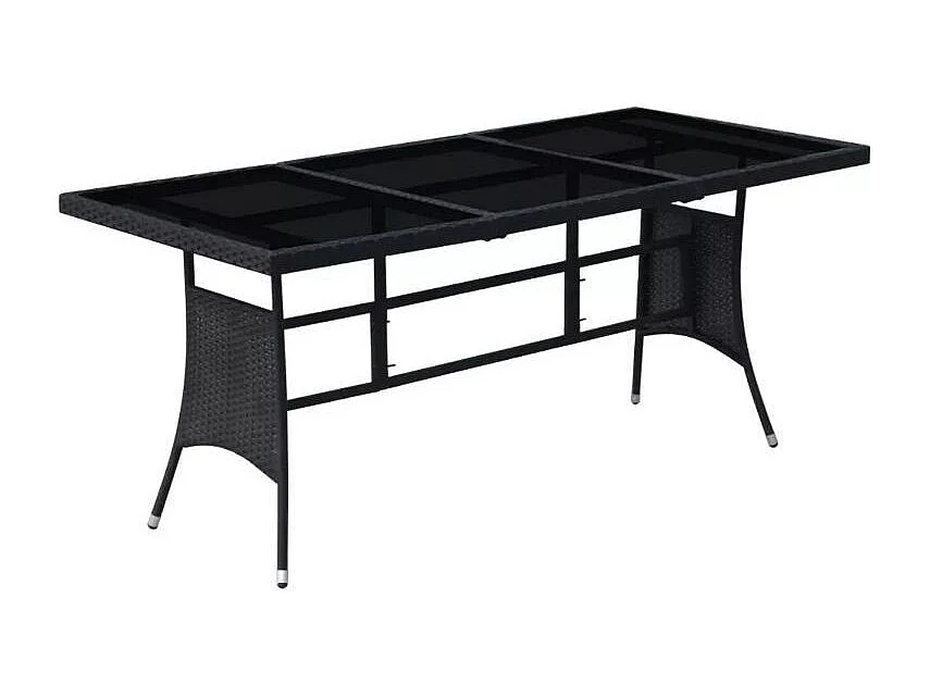Table rectangulaire et 8 chaises de jardin résine tressée noir Kael
