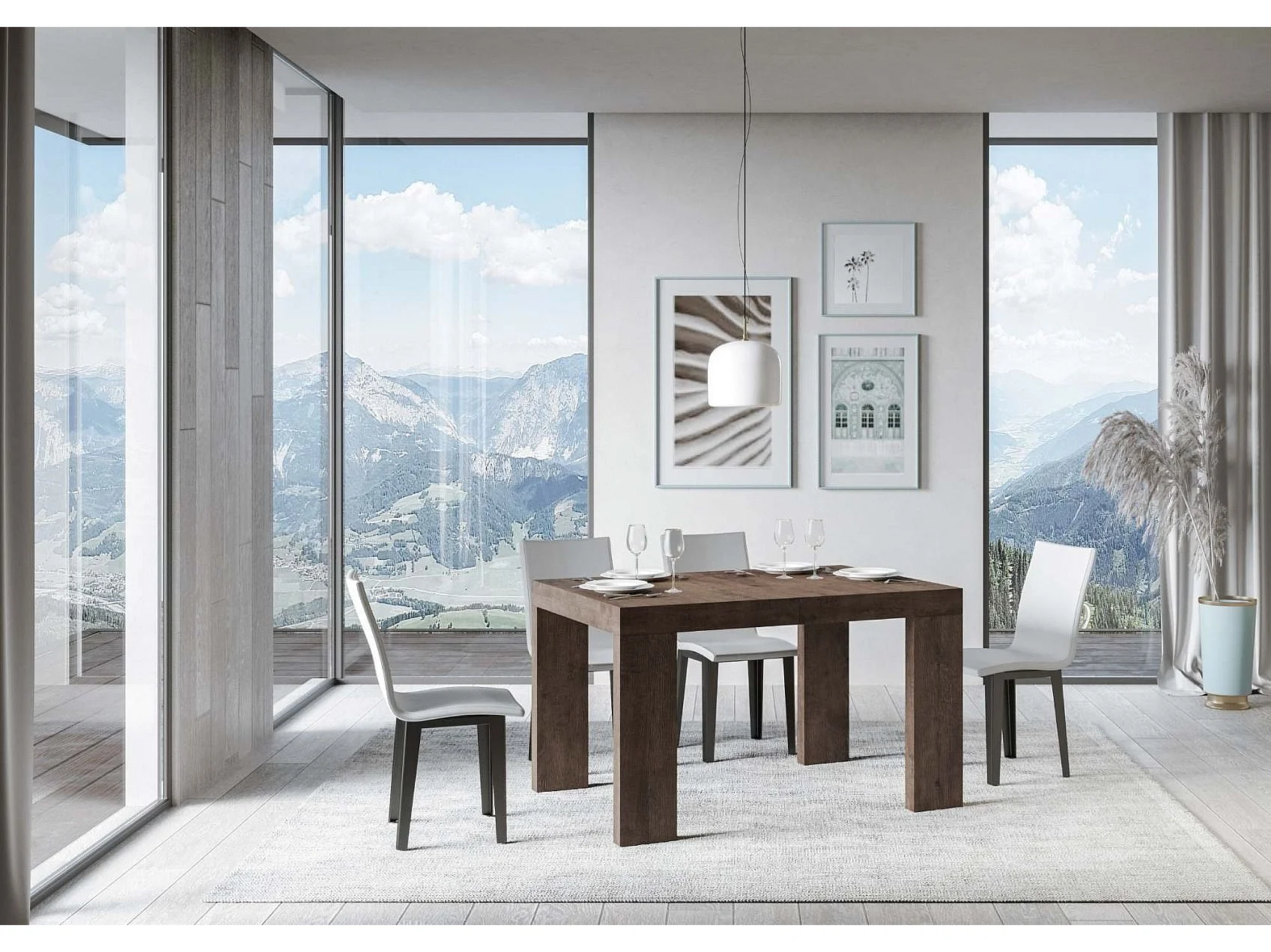 Table rectangulaire extensible 130 à 390cm bois foncé Ribo-Support 4 pieds