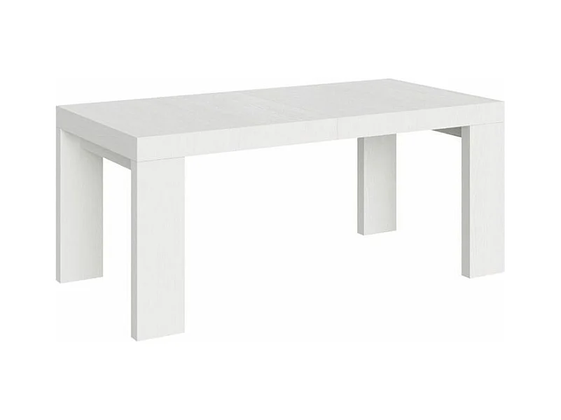 Table à manger extensible bois Ribo-Couleur Blanc-4 pieds-5 rallonges fines-180 à 440cm