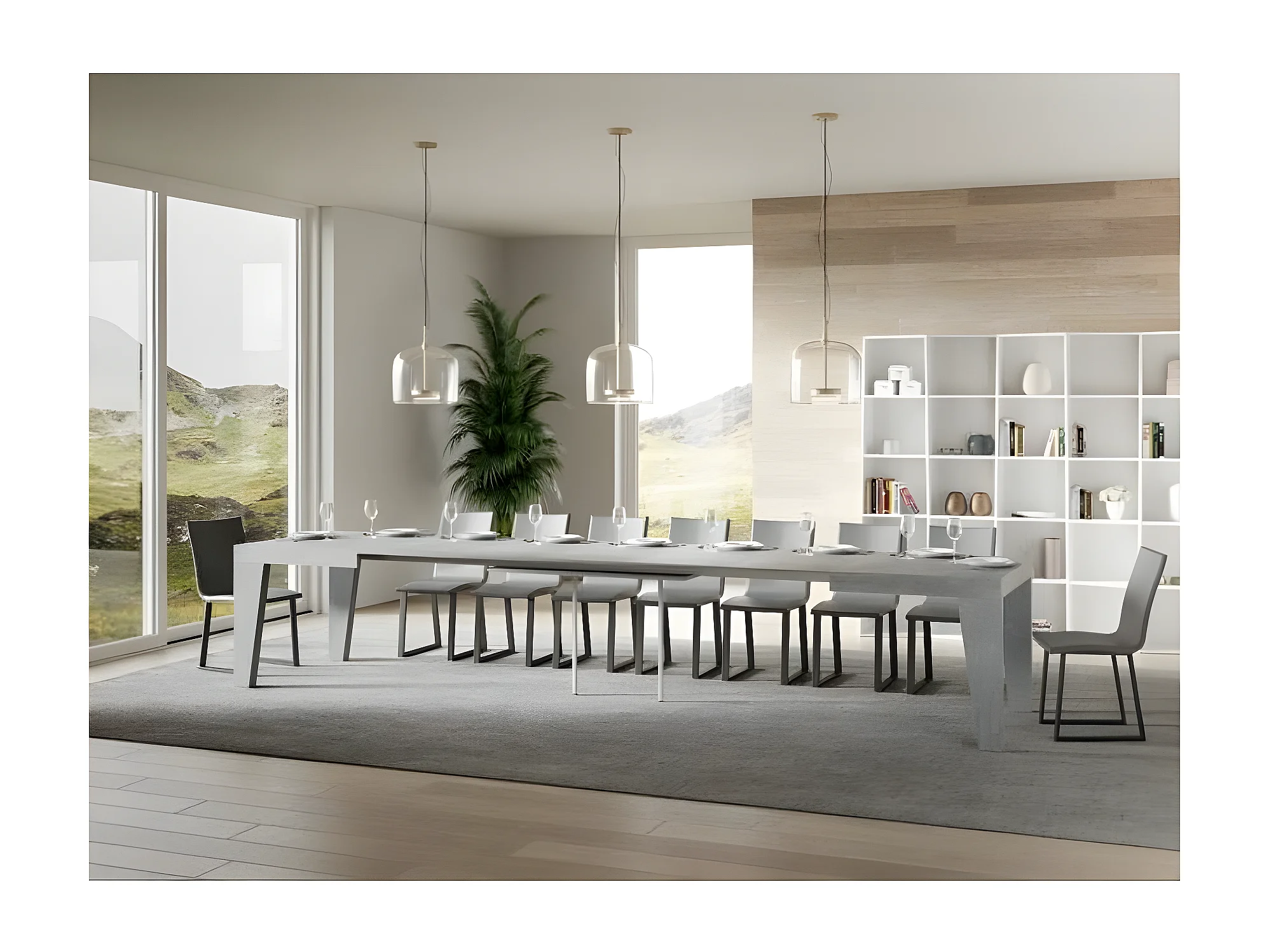 Table rectangulaire extensible 6 à 20 personnes L 180 à 440cm gris béton Naxo