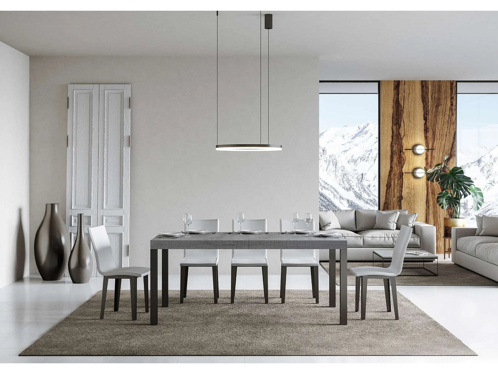 Table à manger extensible Karry-Couleur Gris ciment-Sur roulettes-180 à 440cm