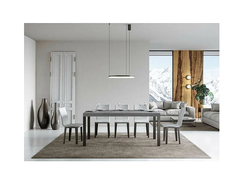 Table à manger extensible Karry-Couleur Gris ciment-4 pieds-180 à 440cm
