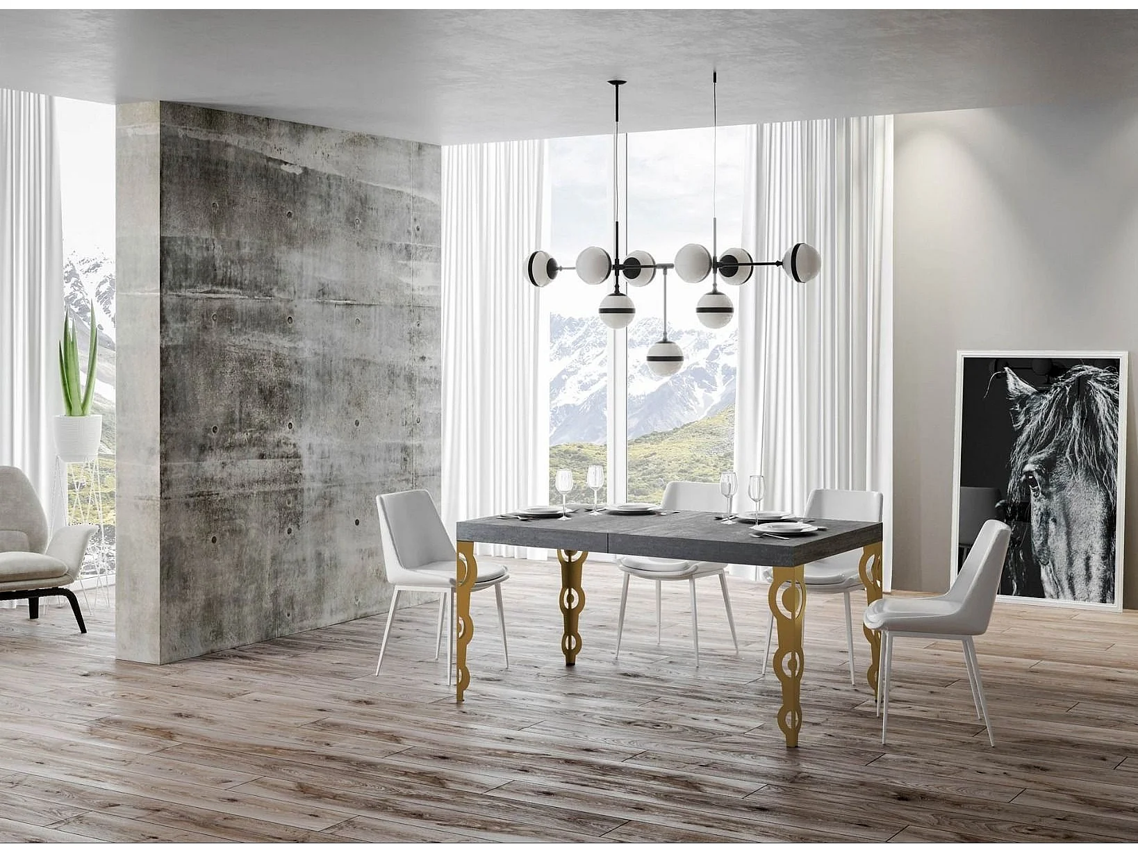 Table rectangulaire extensible orientale 6 à 20 personnes L 160 à 420cm gris béton et pieds métal doré Kazay