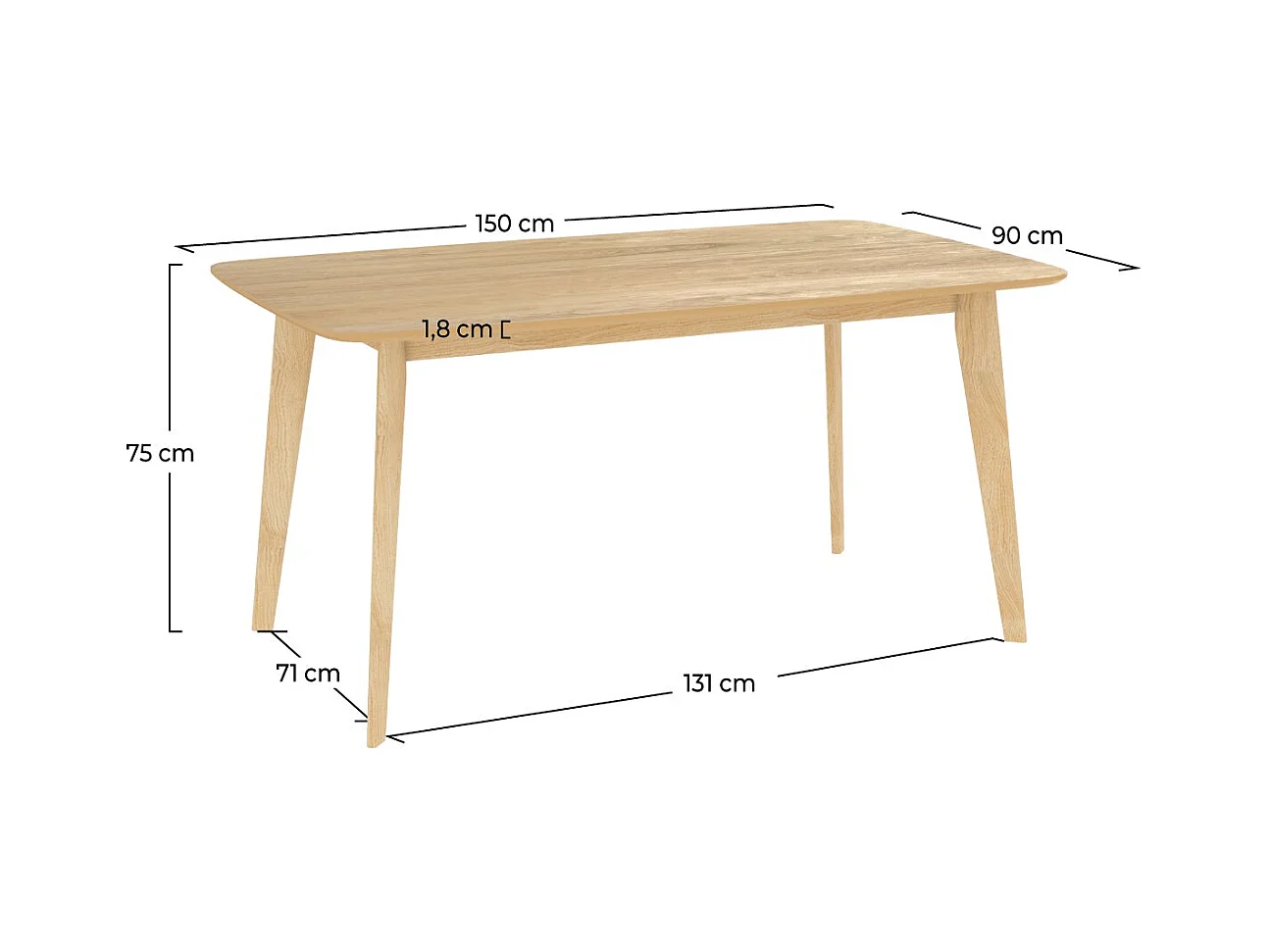 Table rectangulaire 6 personnes en bois clair 150 cm - Oman