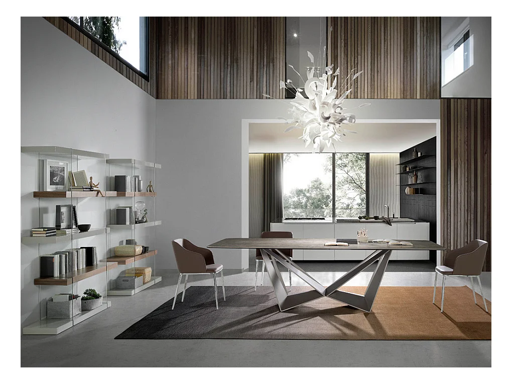 Table rectangulaire plateau en céramique gris marbré et pieds acier noir Trypa 260cm
