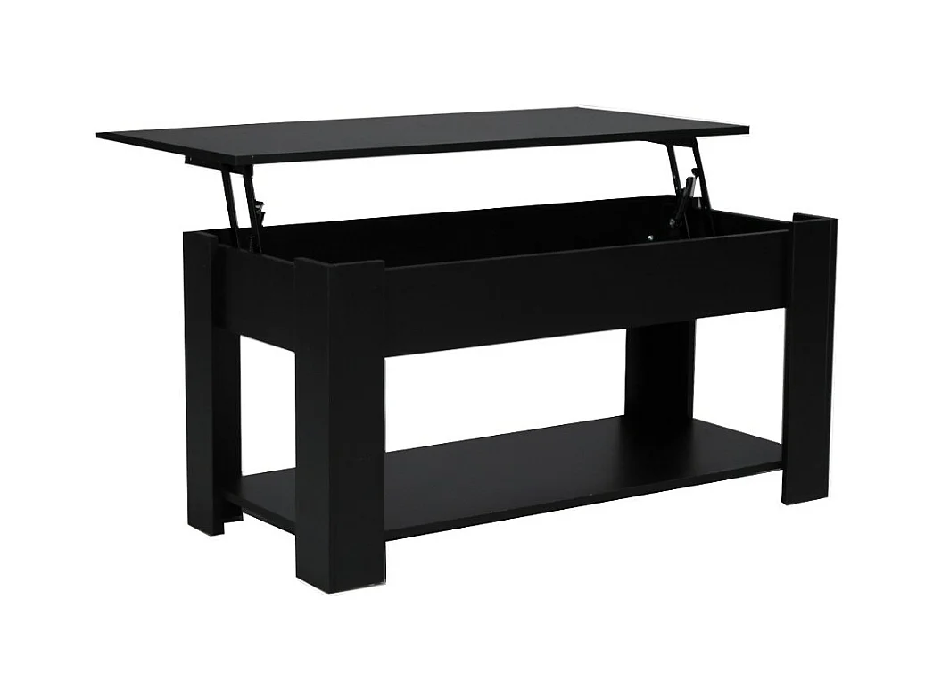 Table relevable 100x50cm Noir avec étagère de rangement Table salon bureau UFUK