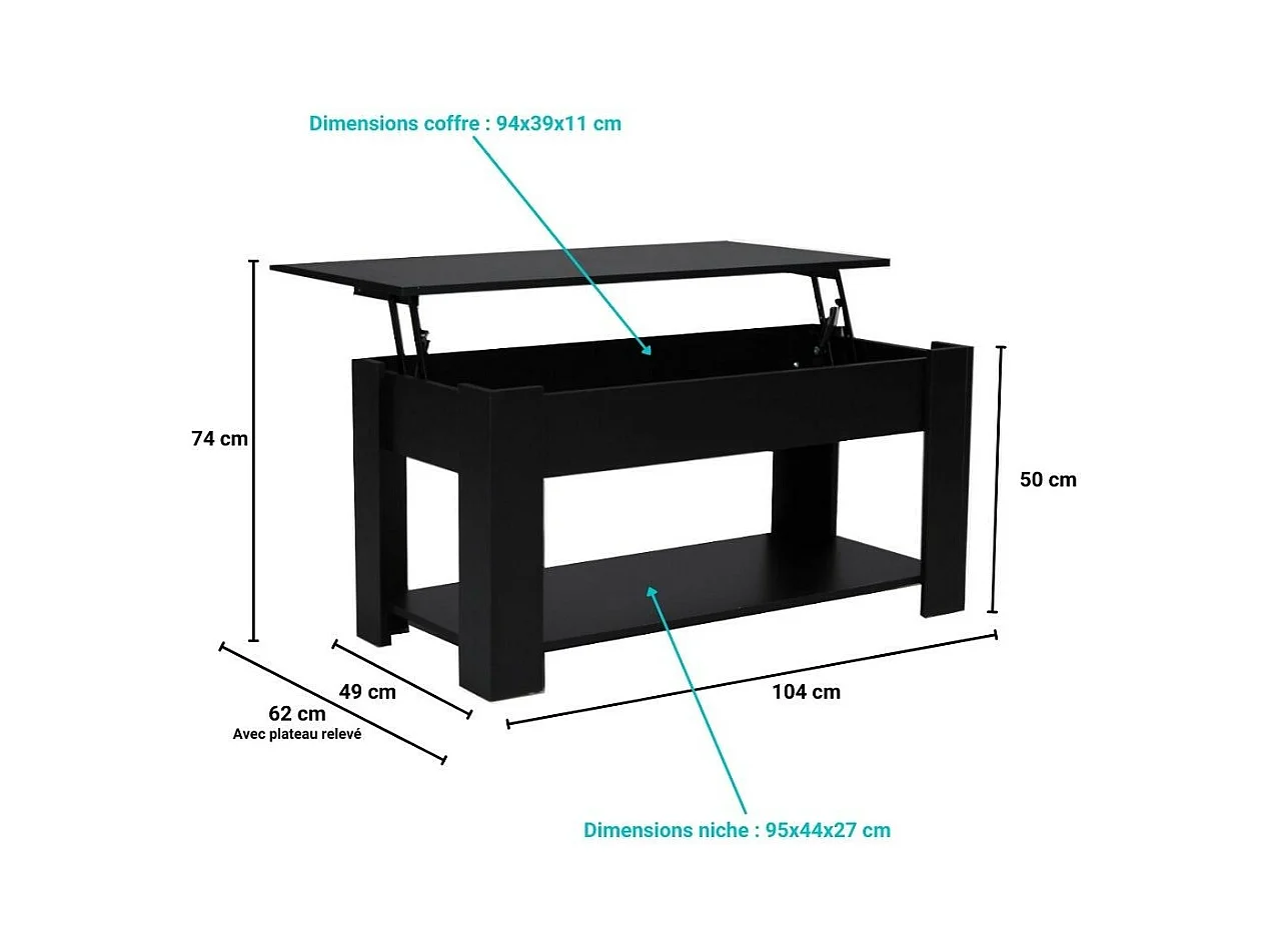 Table basse relevable Noir 101x49x52 cm Bois d'ingénierie OFR14378 BonneVie Meuble