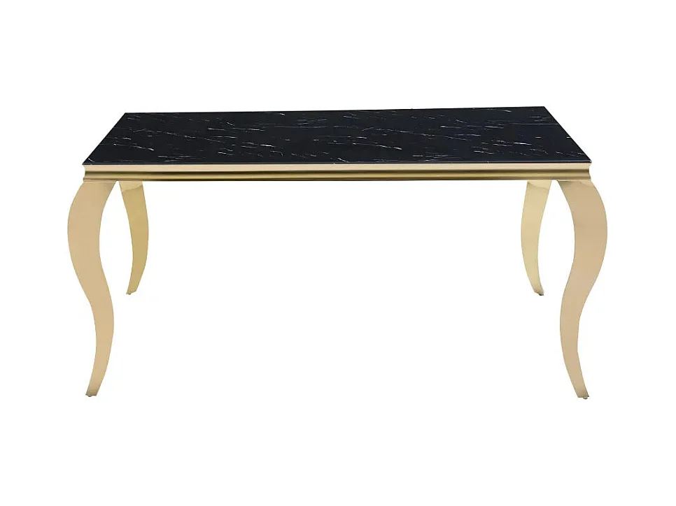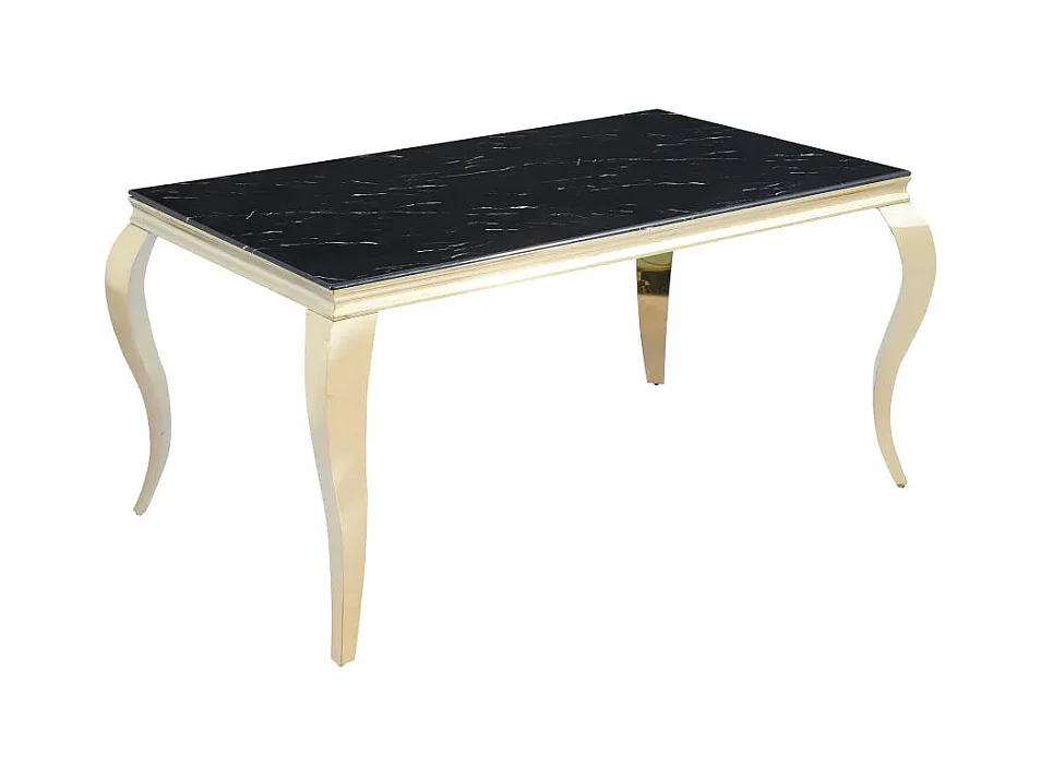 Table à manger BAROQUE 4 à 6 couverts pieds gold plateau en verre 150x90 cm effet marbré noir