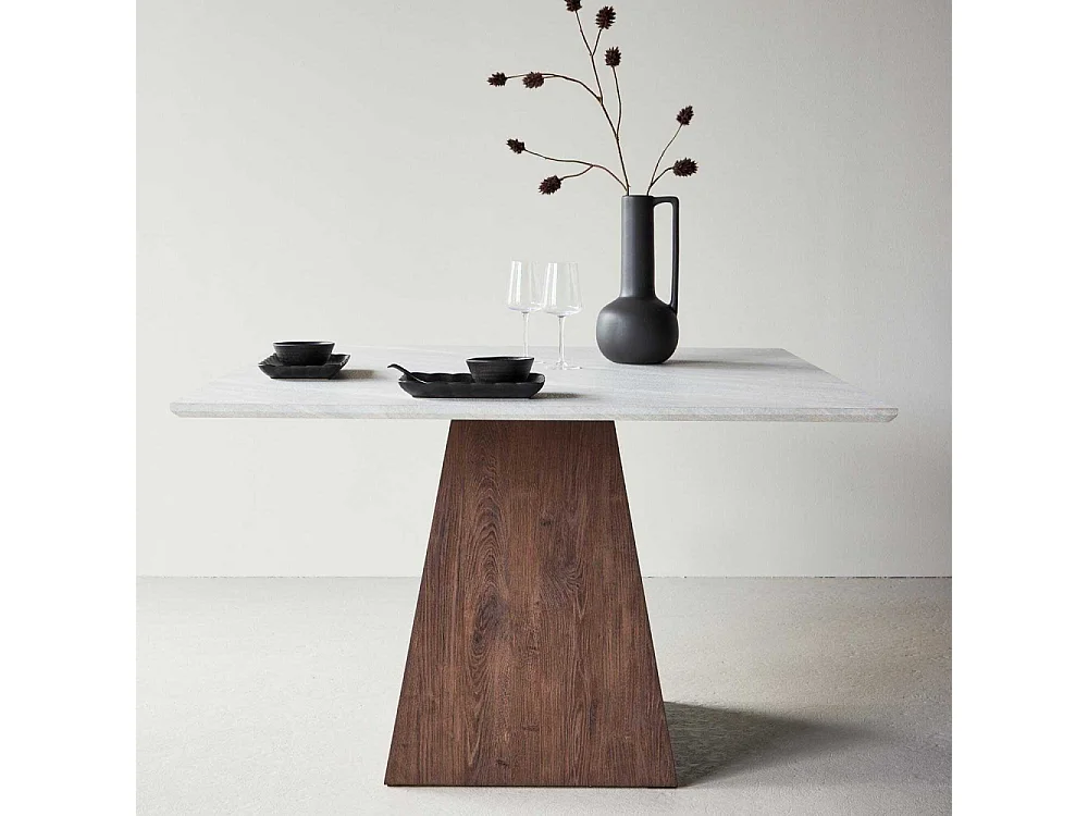 Table de Repas Effet Pierre "Cael" 120cm Gris & Moka