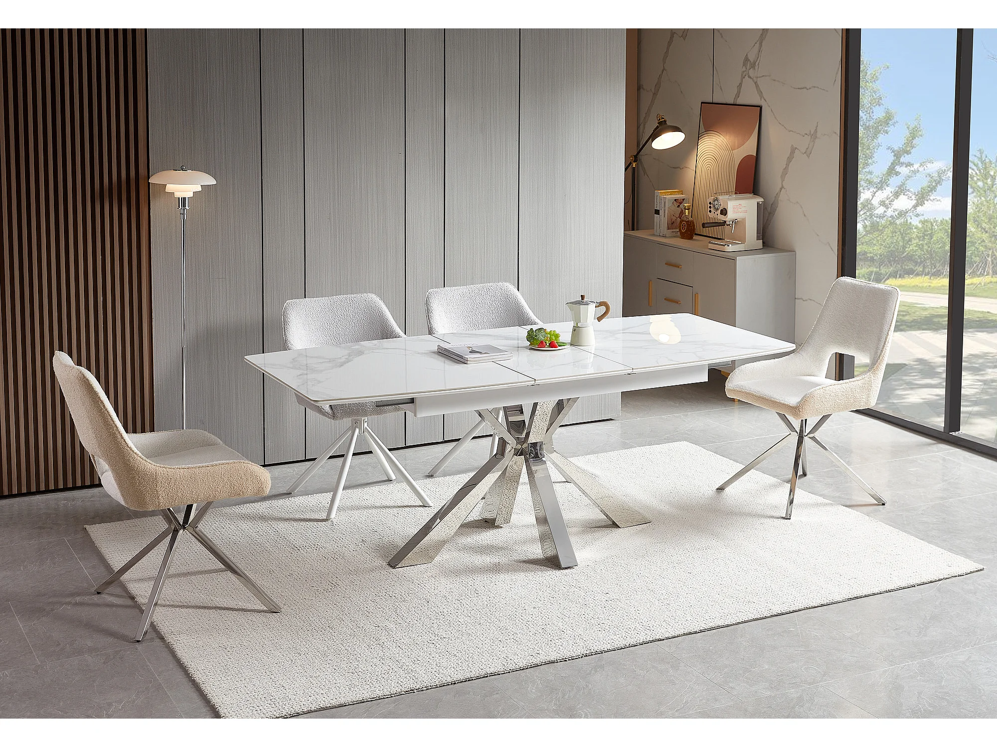 Table extensible BIANCA Chrome plateau Céramique