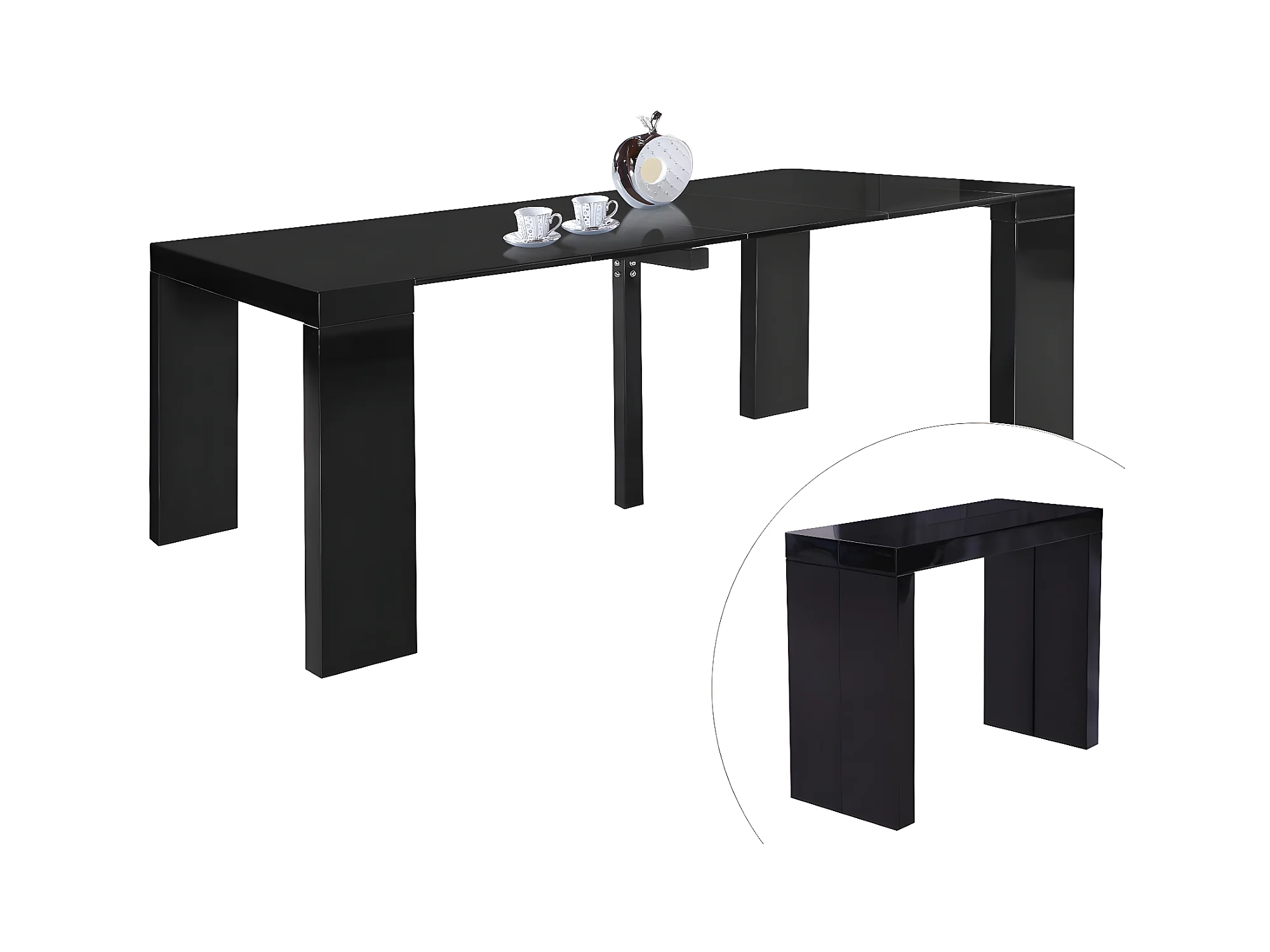 Table repas extensible "Dina" - 200/40 x 94 x 75 cm - Noir laqué