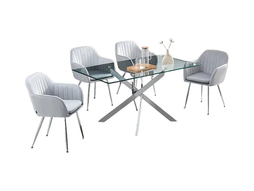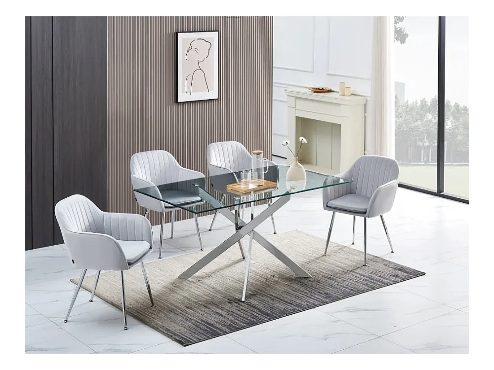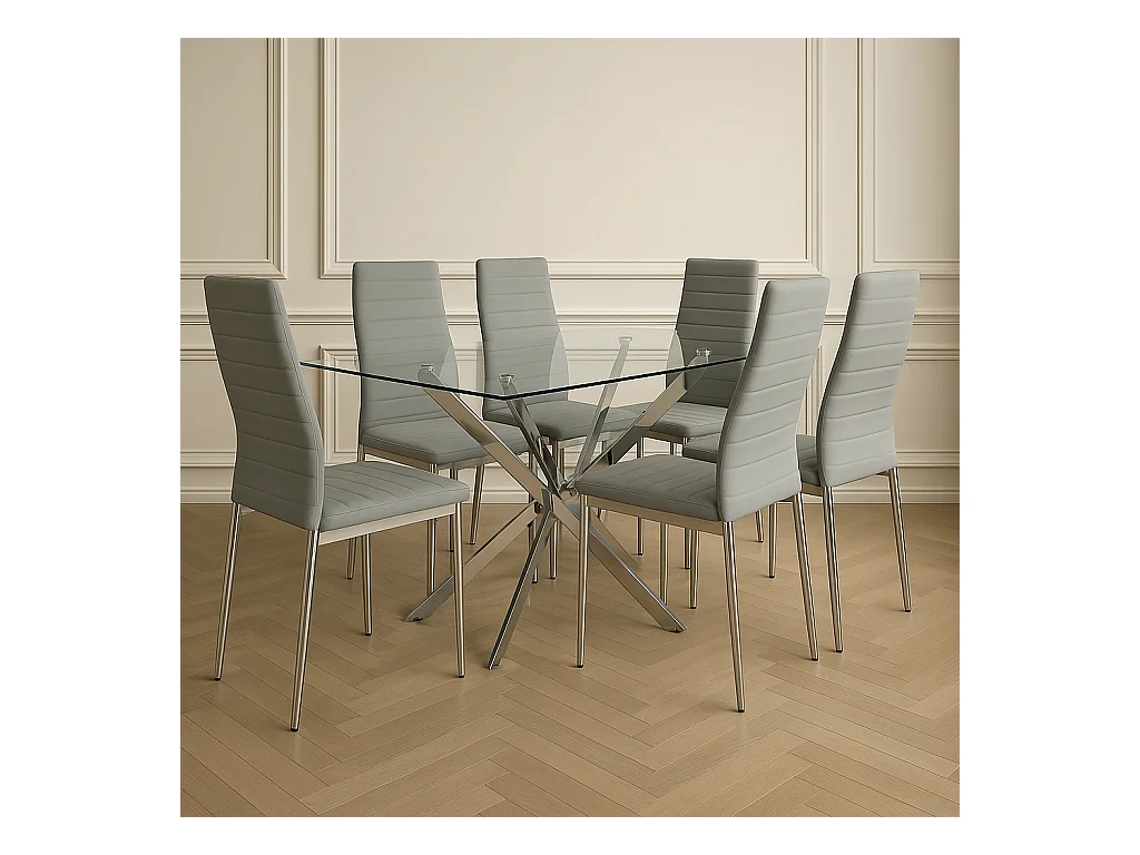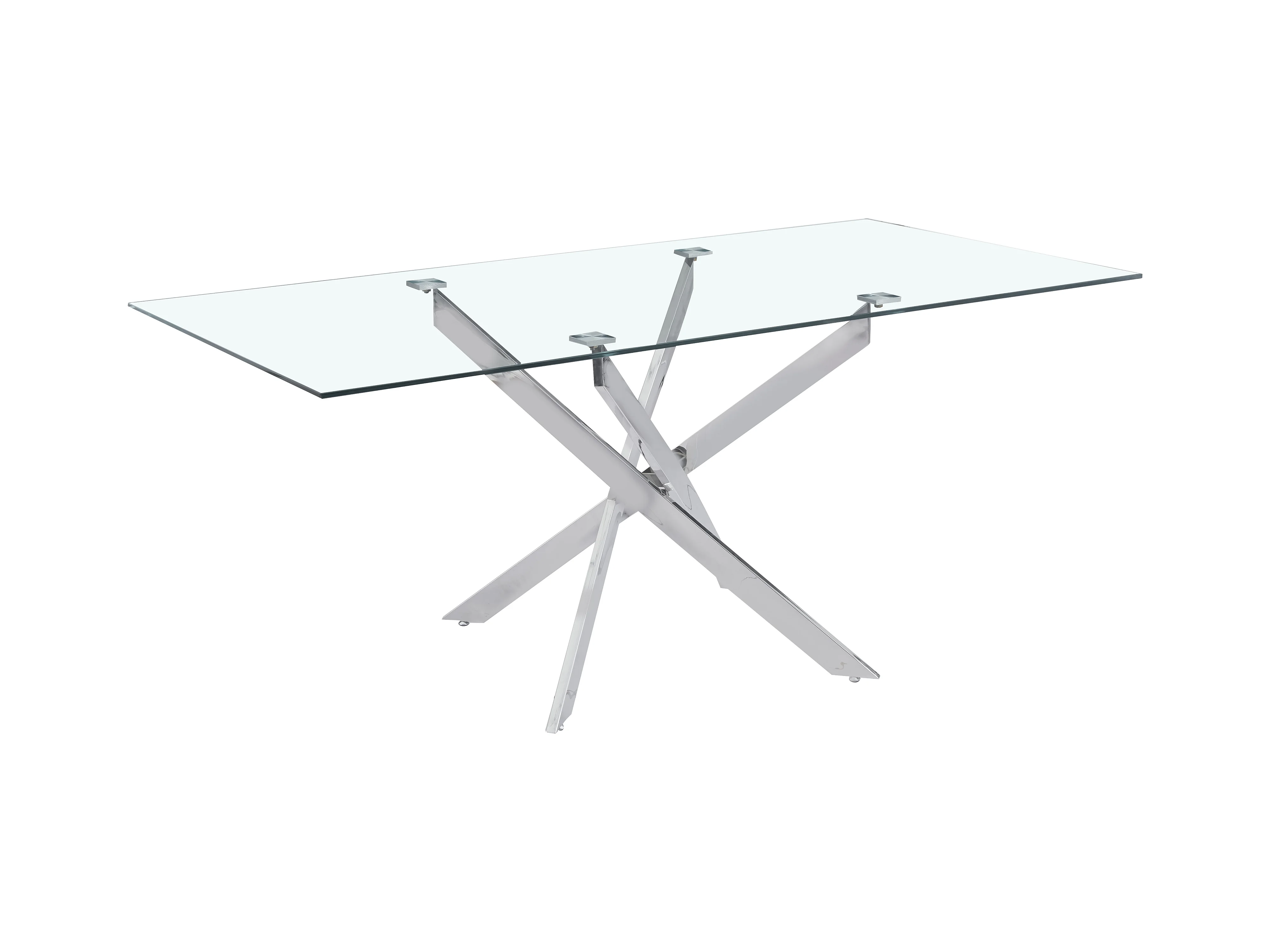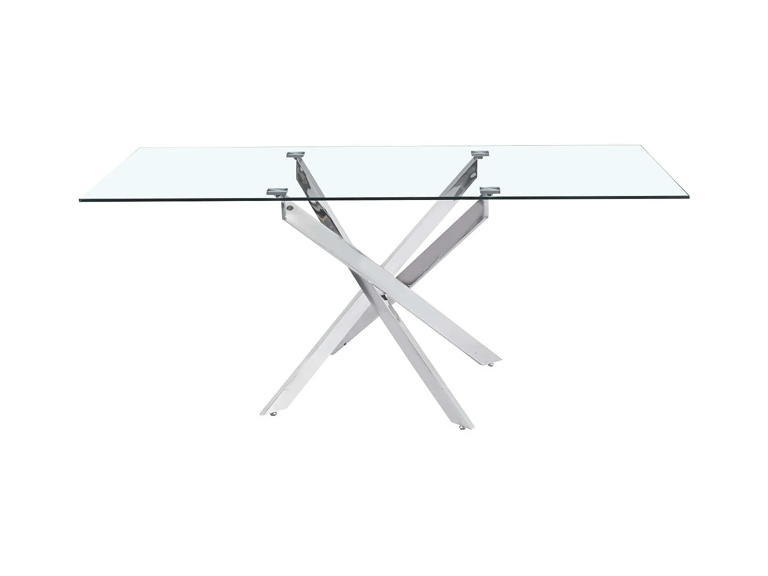 Table Repas JESSICA XXL Chrome et plateau en verre TRANSPARENT 180 cm 6 à 8 couverts