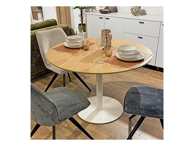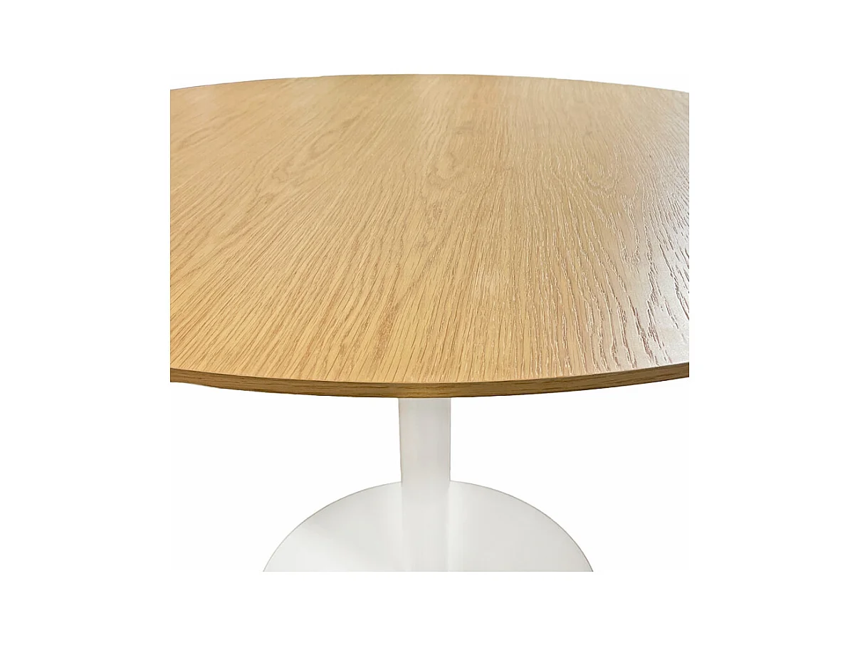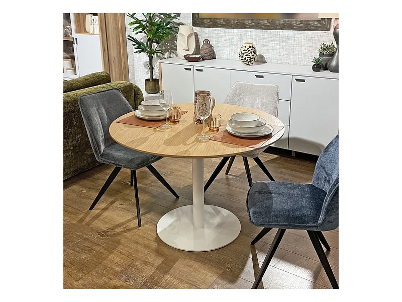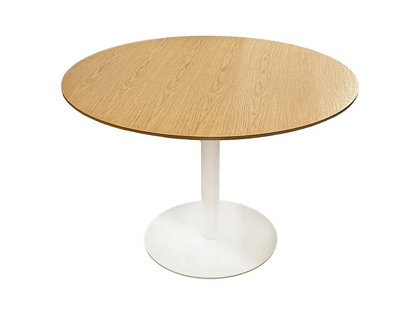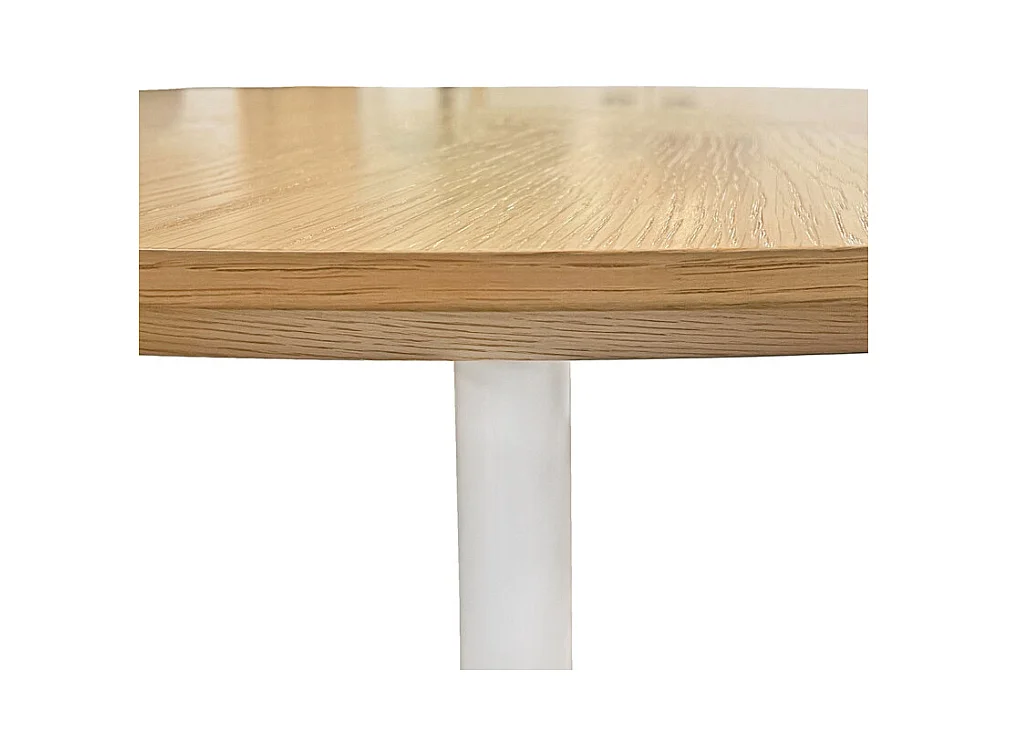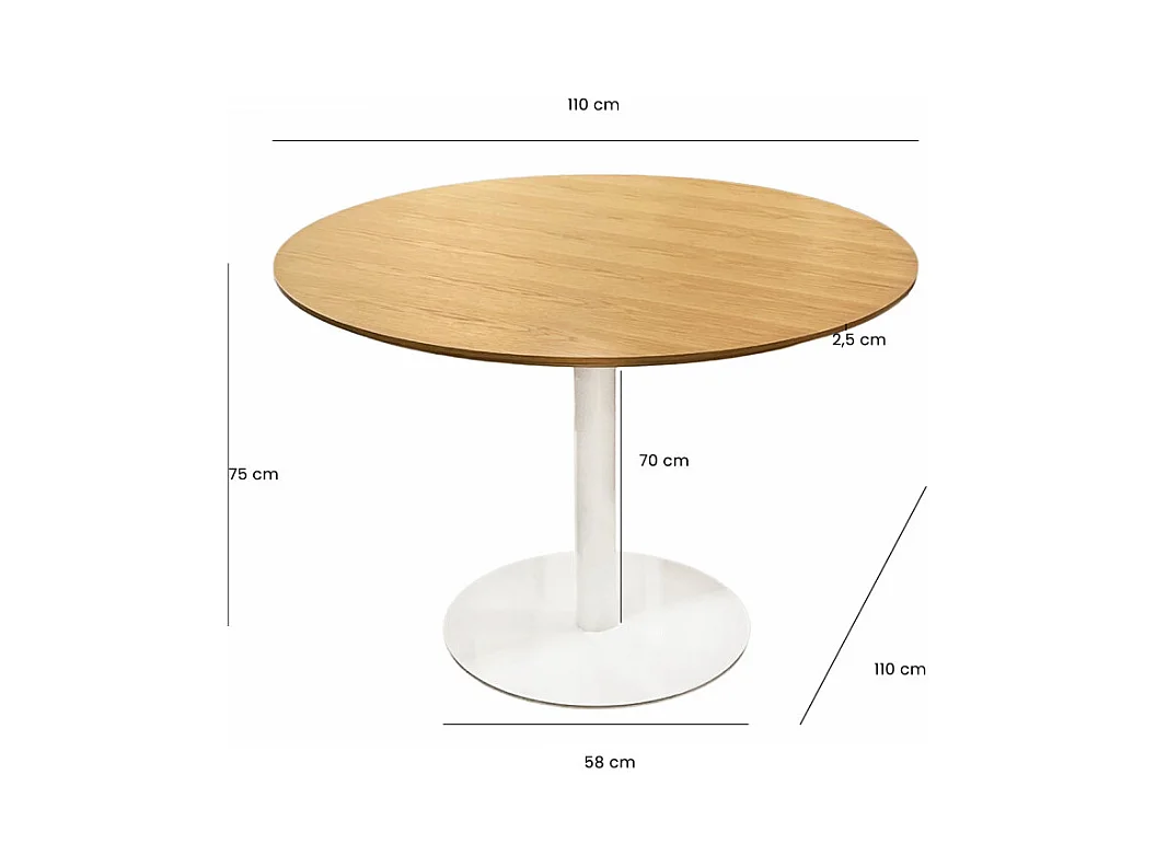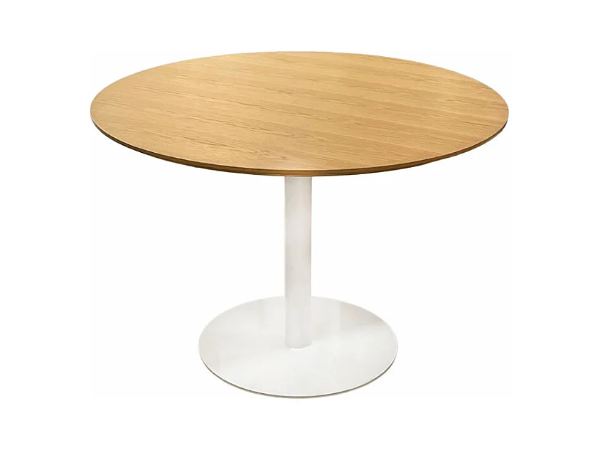Table repas ronde 110 cm plaqué chêne pied métal blanc – VALERIA