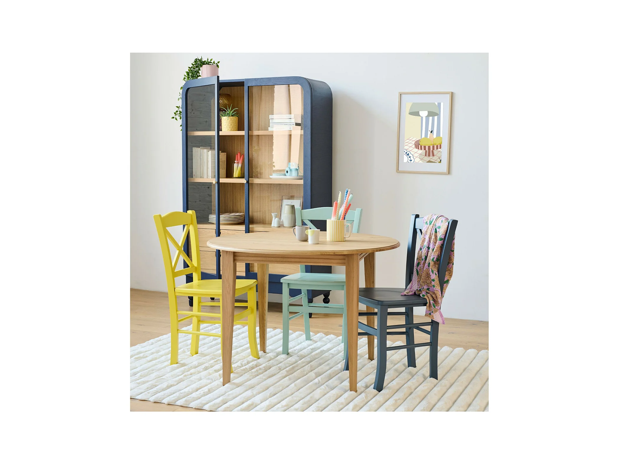 Table ronde 6 pieds fuseau D115 + 3 rallonges bois - VICTORIA