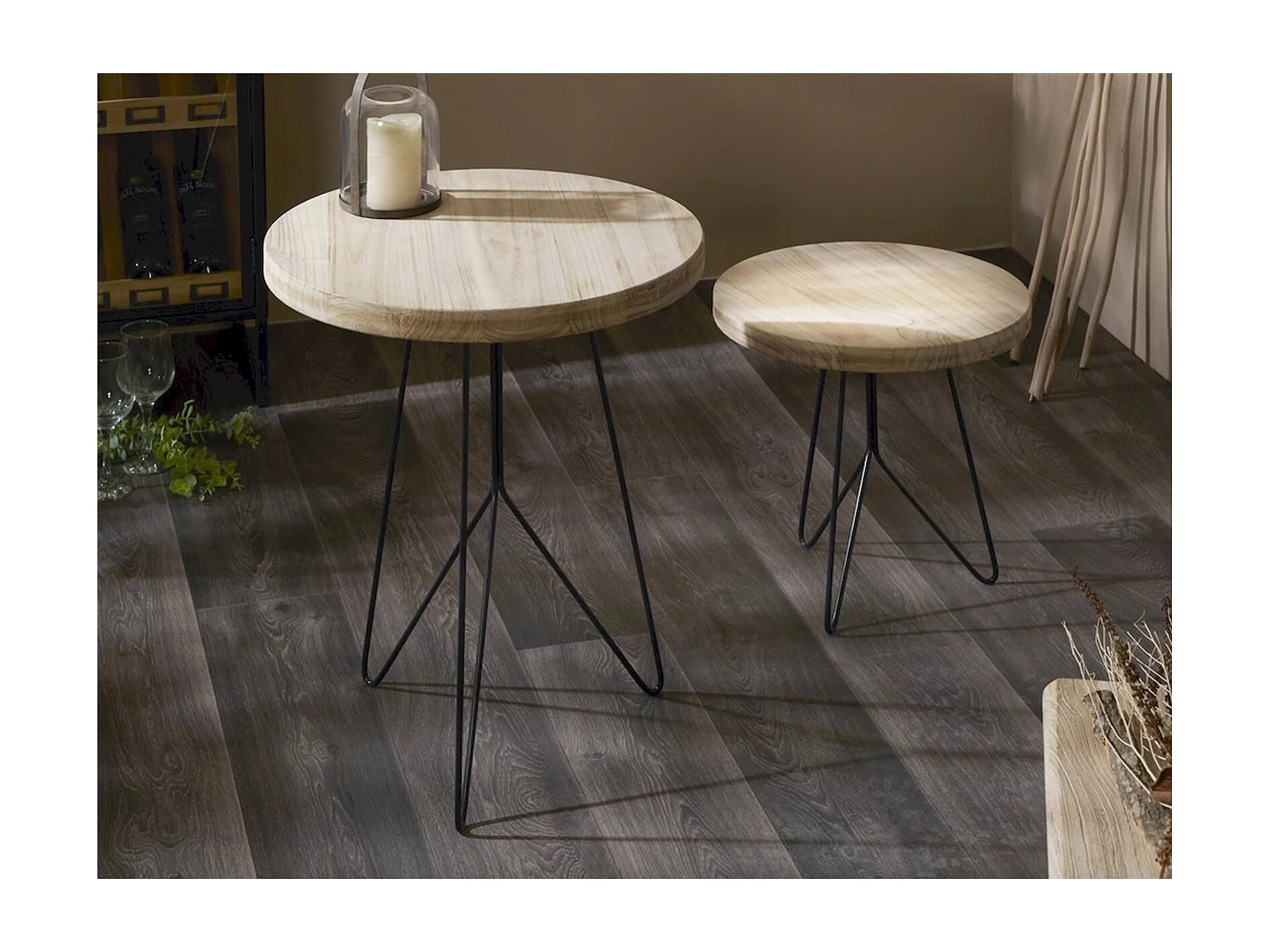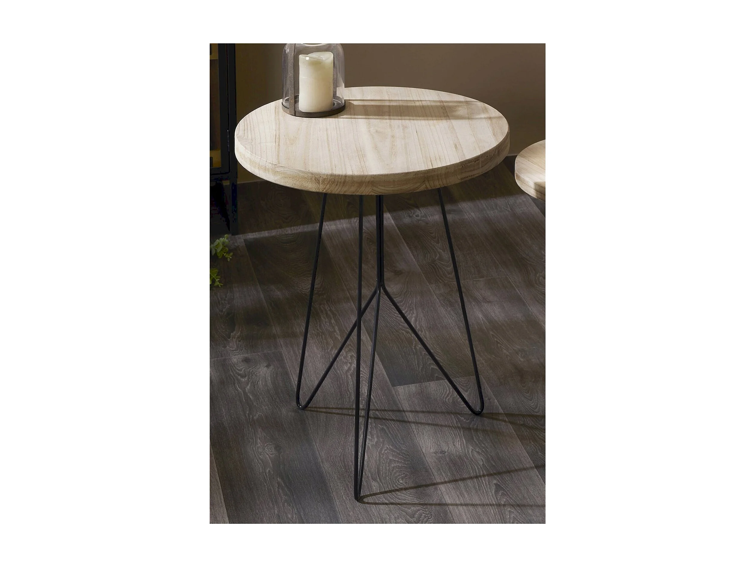 Table ronde bois naturel pieds métal noir élégance moderne