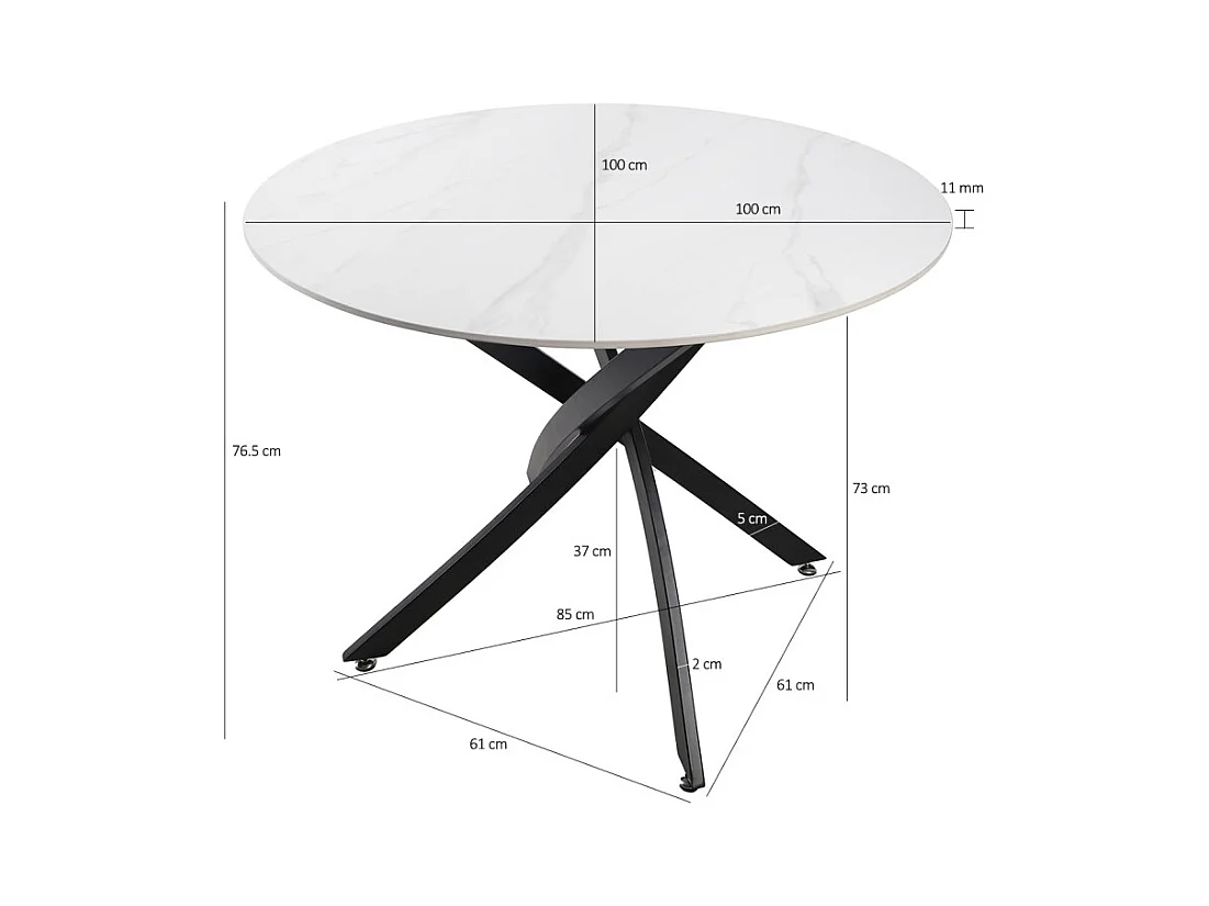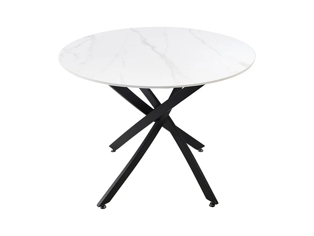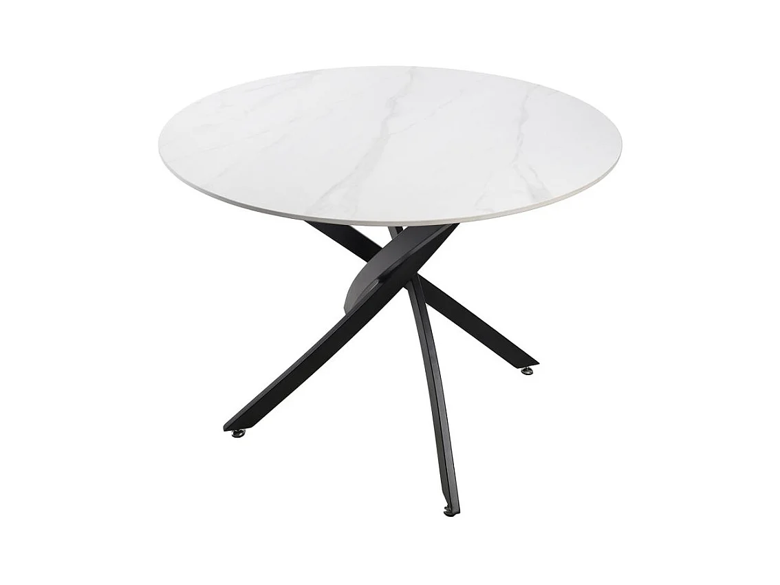 Table ronde D. 100 cm céramique blanc marbré pieds métal - RYDER 2