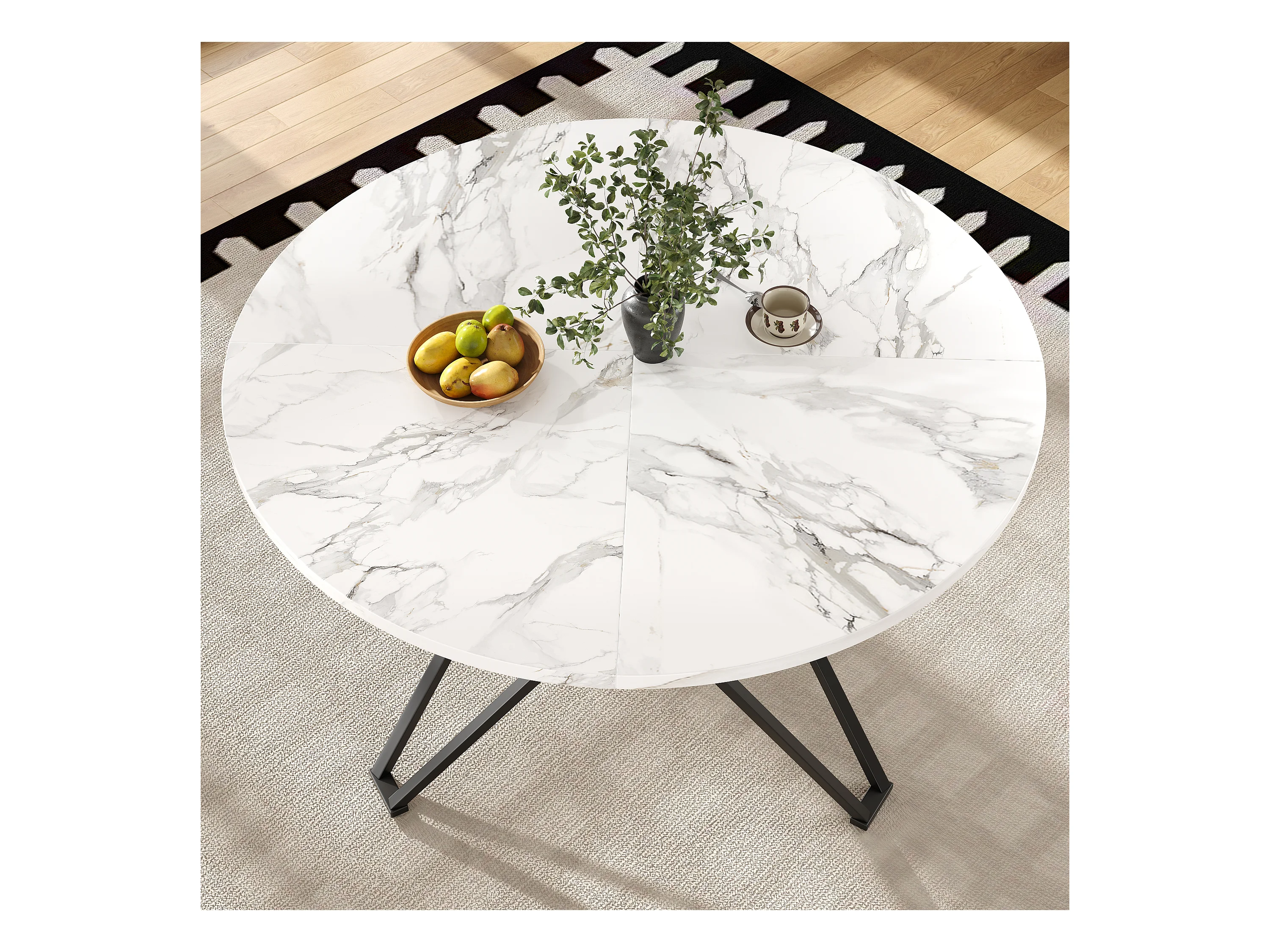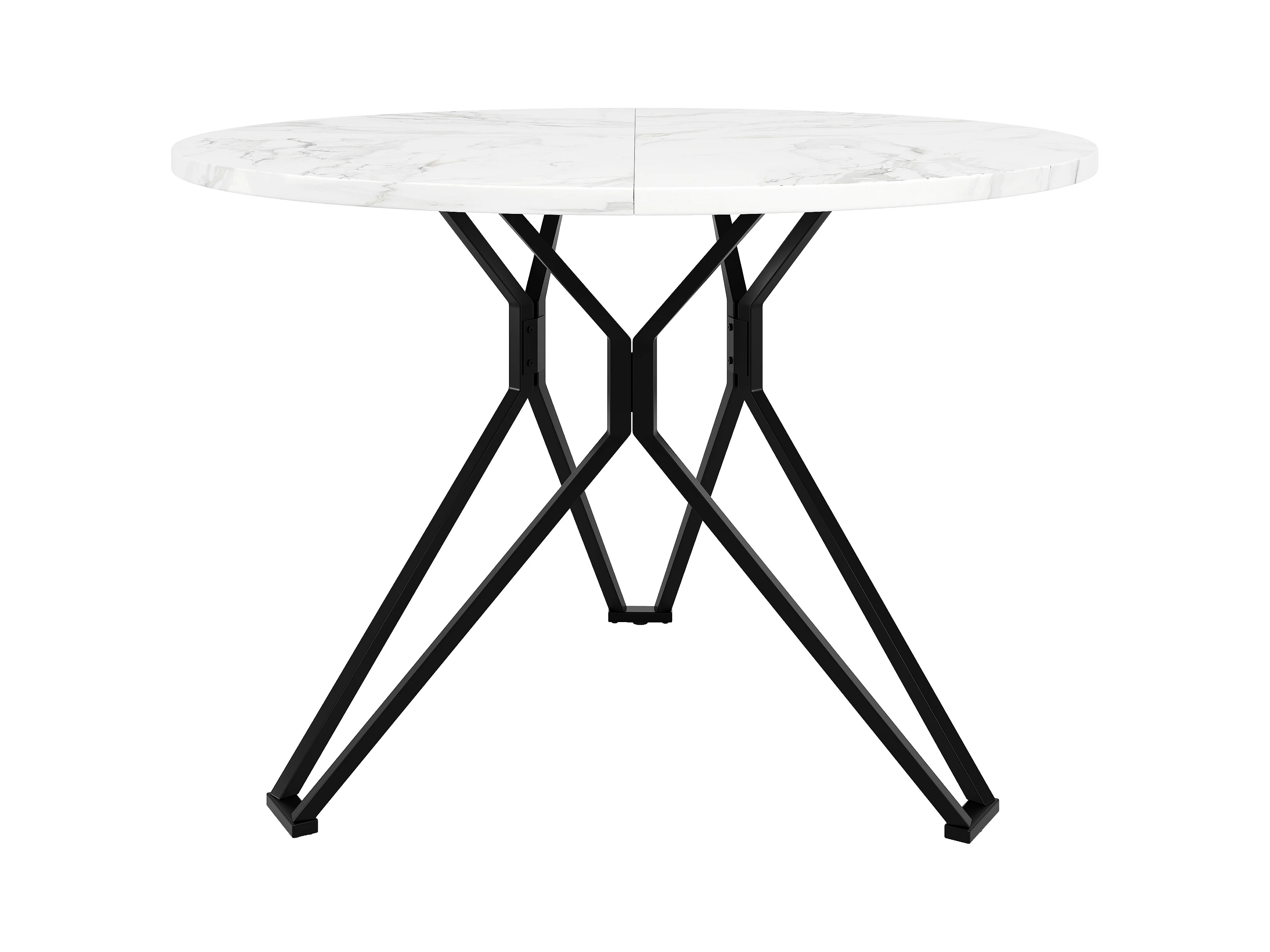 Table ronde design, plateau MDF imitation marbre, pieds métal noir, pour salle à manger et salon (100x100x76cm)