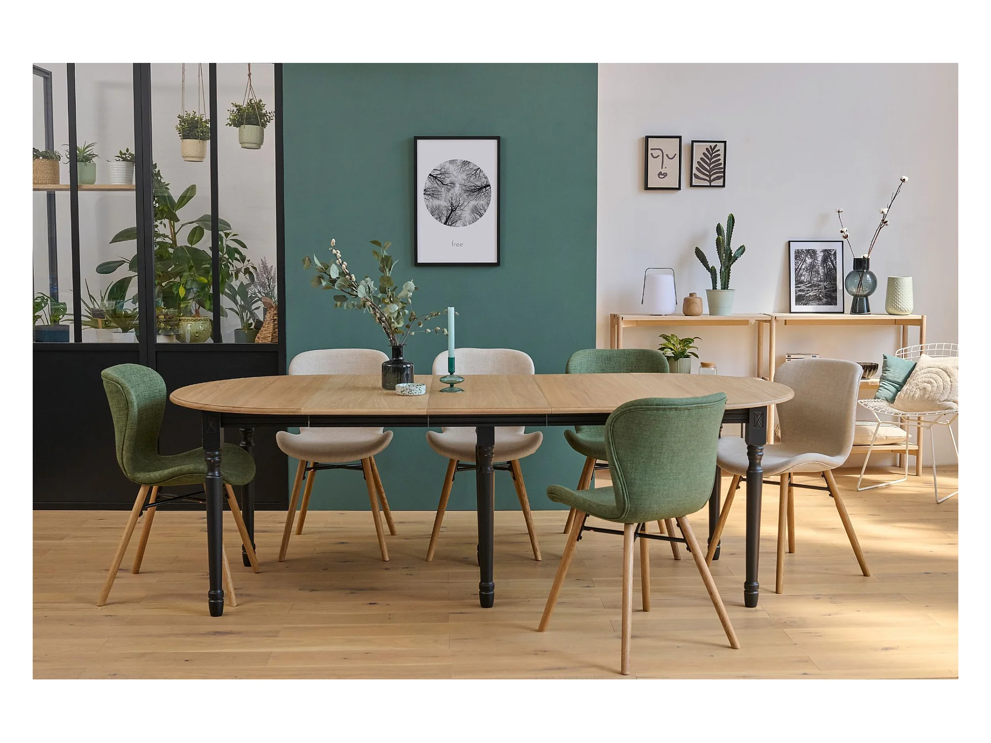Table ronde en bois 6 pieds tournés D105 + 3 rallonges bois - VICTORIA