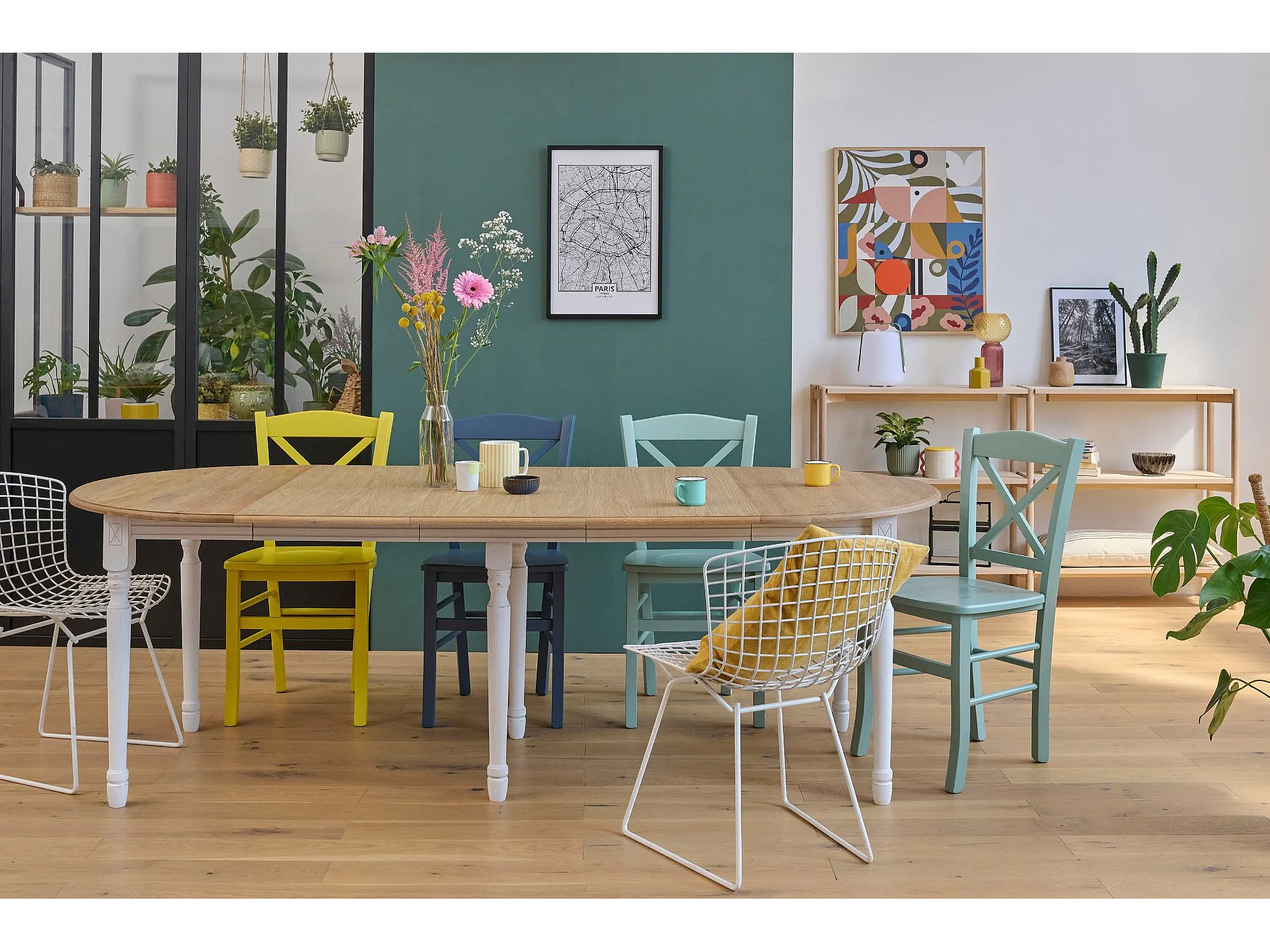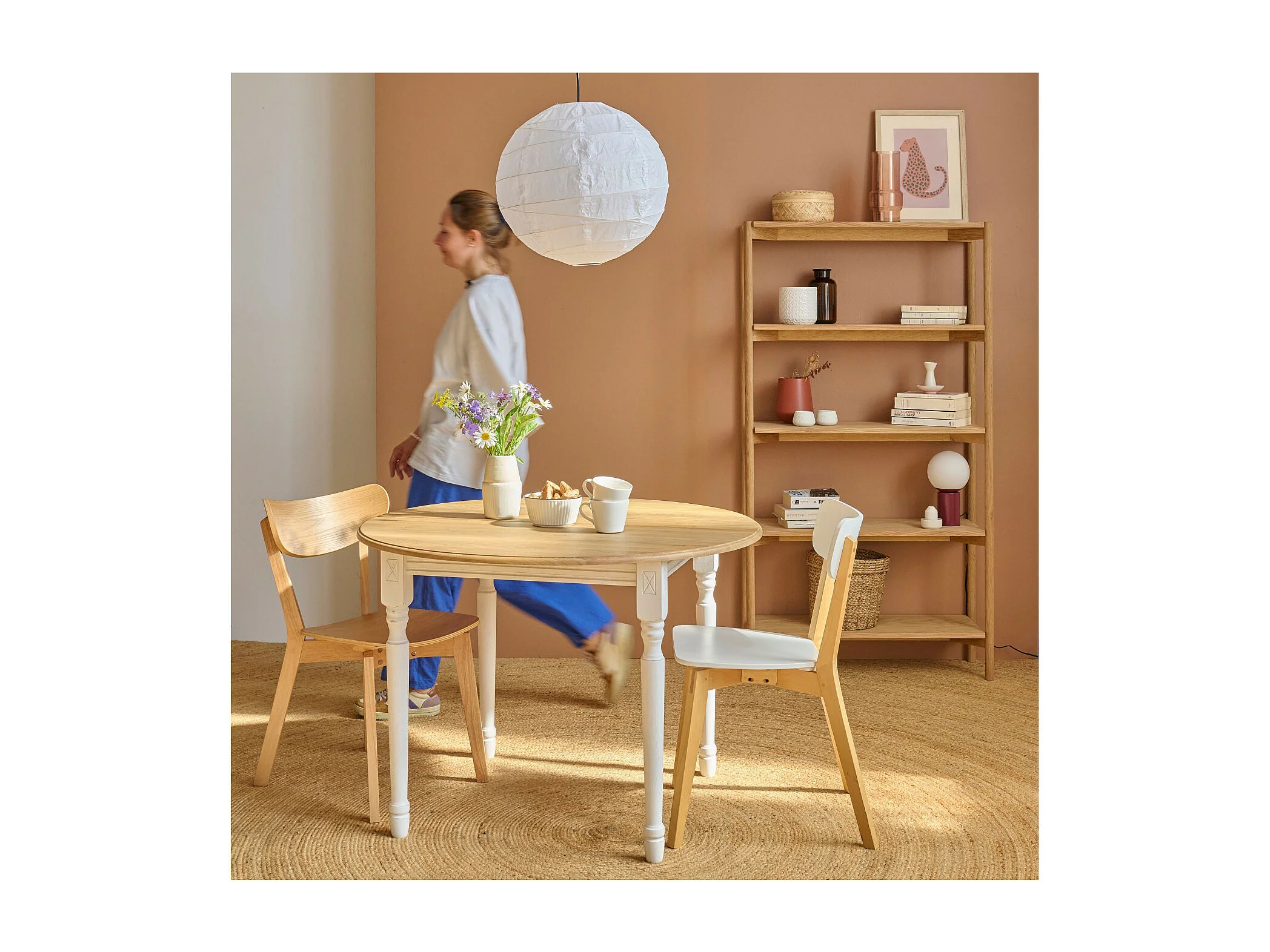 Table ronde en bois 6 pieds tournés D105 + 3 rallonges bois - VICTORIA
