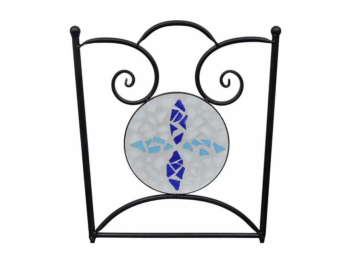 Table ronde et 2 chaises de jardin mosaïquées bleu et blanc Mel