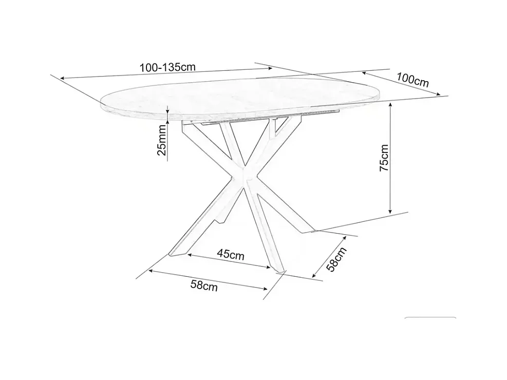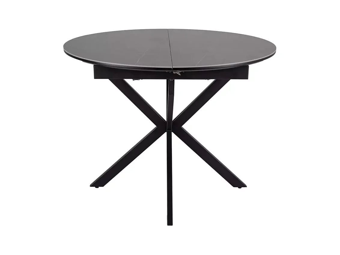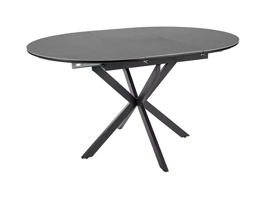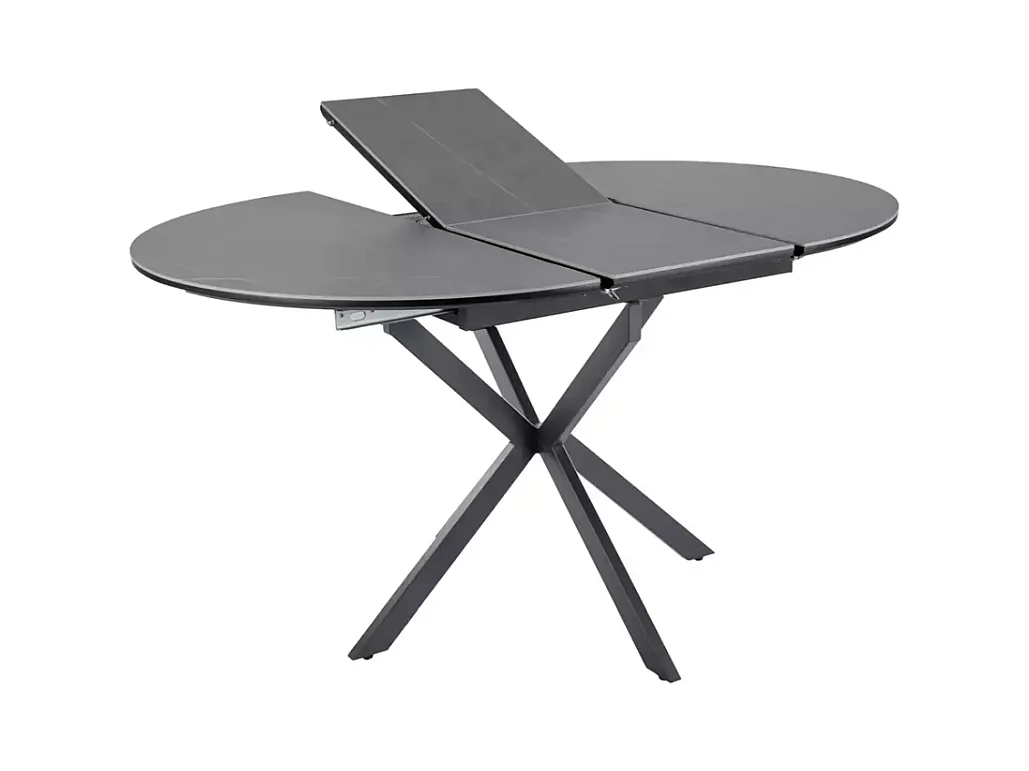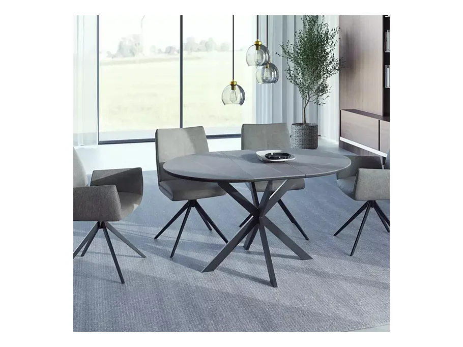 Table ronde extensible 135cm 6 pers céramique grise pied métal noir MILANOZ