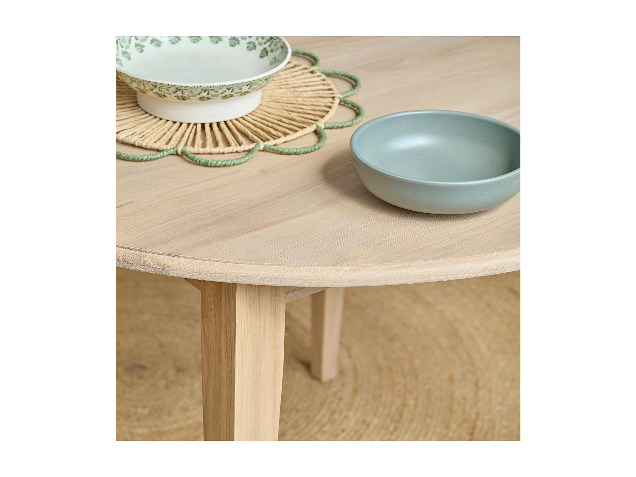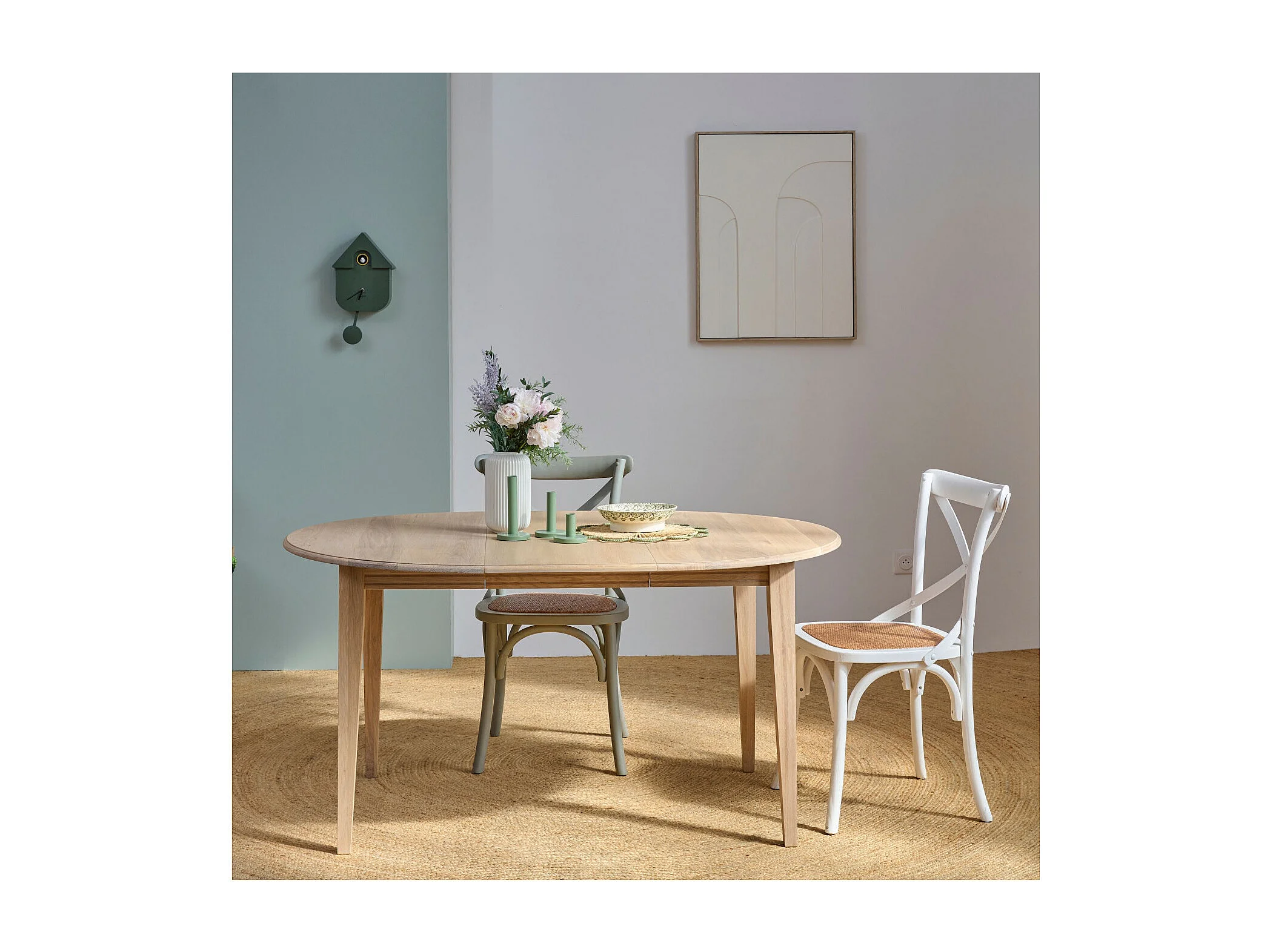 Table ronde extensible chêne blanchi 4/6 places D105 pieds fuseau - VICTORIA